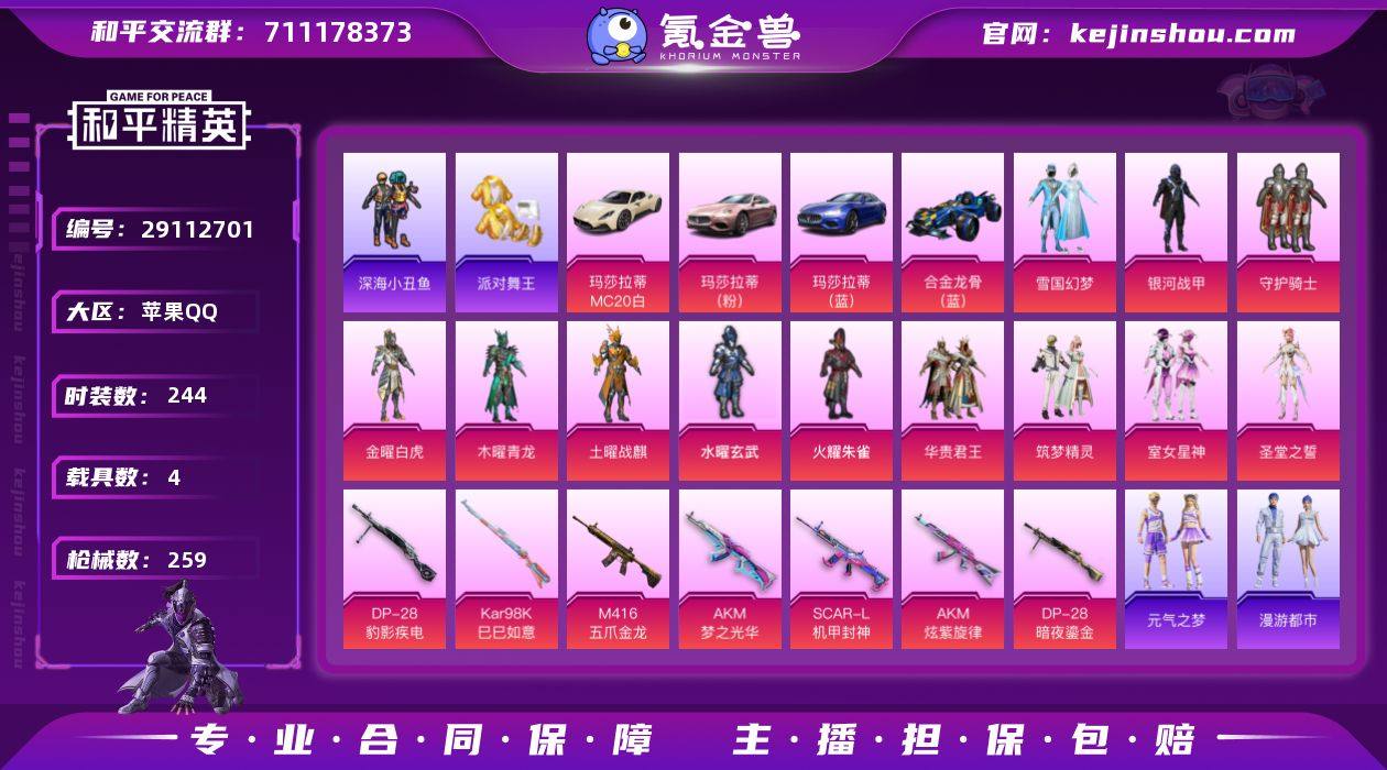 iOS-印记18【3玛莎 金曜白虎 木曜青龙 土耀战麒 水曜玄武 火曜朱雀 雪国幻梦 梦幻火箭】可改实名 4载具13粉装 244套装7特效枪4满级 259枪械4载具玛莎拉蒂MC20(星石白) 玛莎拉蒂Ghibli(粉) 玛莎拉蒂Ghibli(蓝) 合金龙骨蓝 M416-五爪金龙[7级] AKM-炫紫旋律[1级] AKM-梦之光华[7级] SCAR-L-机甲封神[7级] DP-28-暗夜鎏金[7级] DP-28-豹影疾电[5级] 室女星神 圣堂之誓 筑梦精灵 华贵君王 银河战甲 金曜白虎 木曜青龙 土耀战麒 水曜玄武 火曜朱雀 雪国幻梦 守护骑士 梦幻火箭 王牌印记18 热力值95534 N4005和平精英买号永久包赔带二次营地ID:709711941