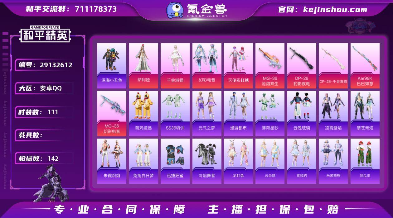 妹妹号 高性价比可改实名 【5枪4满级 萨利娅 千金淑猫 深海小丑鱼 】5特效枪 4粉装 111套装 142枪械 幻彩电音 天使彩虹糖 萨利娅 千金淑猫 深海小丑鱼 迅捷狂鲨 满级MG-36-沧焰双生 4级MG-36-幻彩电音 满级DP-28-千金淑猫 满级DP-28-豹影疾电 满级Kar98K-巳巳如意 5王牌印记 43431热力值 N4034 和平精英买号永久包赔带二次营地ID:945712260