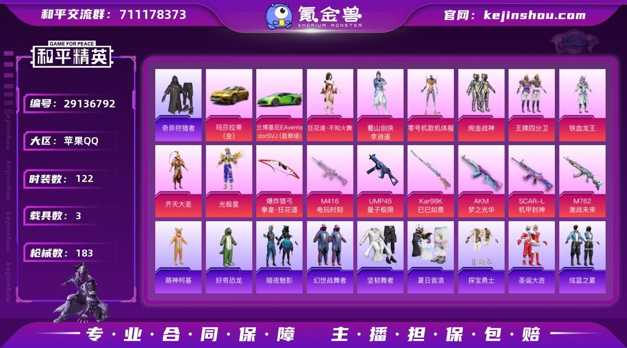 iOS 不可改实名【无敌战神框22王牌印记 7满级枪 狂花道不知火舞 光极星 零号机 齐天大圣 铁血龙王 绚金战神 梦幻火箭 】 2载具 7特效枪 9粉装 122套装 183枪械 65409热力值 狂花道不知火舞 光极星 零号机 齐天大圣 铁血龙王 绚金战神 梦幻火箭 奇异狩猎者 空客H135-蔚蓝之翼 兰博基尼AventadorSVJ(翡翠绿) 玛莎拉蒂Ghibli(金) 满级爆炸猎弓-拳皇-狂花道 满级UMP45-量子极限 满级M416-电玩时刻 满级SCAR-L-机甲封神 满级AKM-梦之光华 满级M762-激战未来 满级Kar98K-巳巳如意 N4115 和平精英买号永久包赔带营地ID:714049718