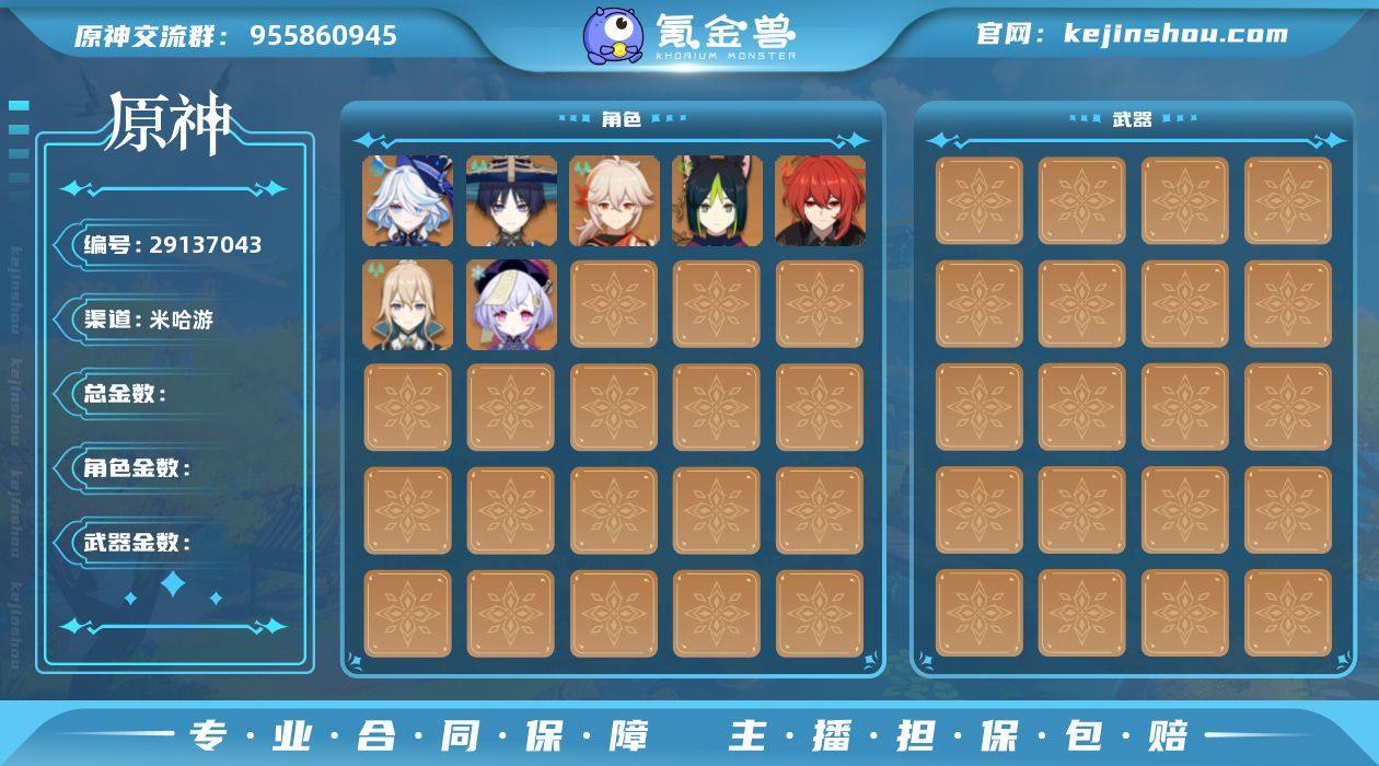 16金 55冒险等级 5金武器 11金人物 柔灯挽歌 天空之脊 天空之刃 金流监督 白雨心弦 1命艾梅莉埃 阿蕾奇诺 芙宁娜 玛薇卡 枫原万叶 琴 流浪者 七七 迪卢克 提纳里 无绑定邮箱 N4047
