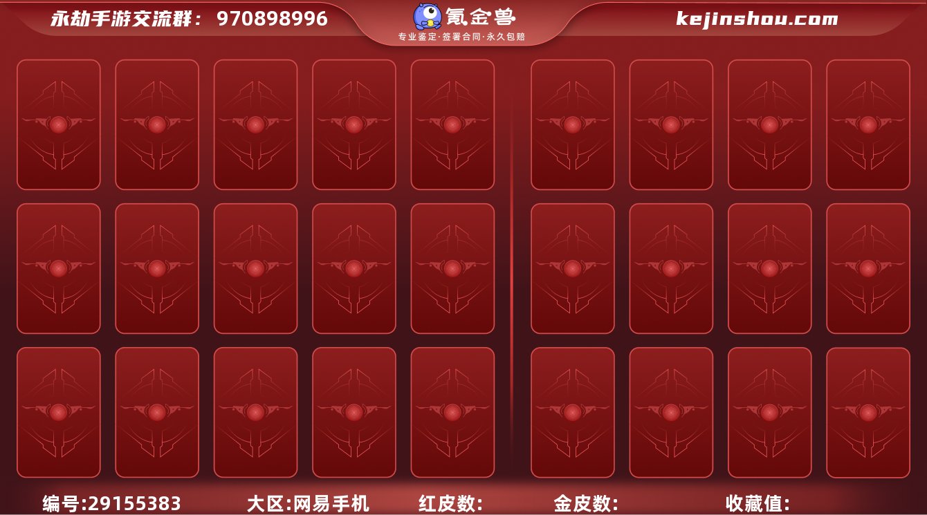 网易支付状态: 可注销 换绑冷却: 无冷却 段位: 永劫罗刹 收藏值: 36518 红皮数: 2 金皮数: 30 角色红皮: 沙漠香风(迦南) 武器红皮: 狼主(阔刀) 亮点: 没有