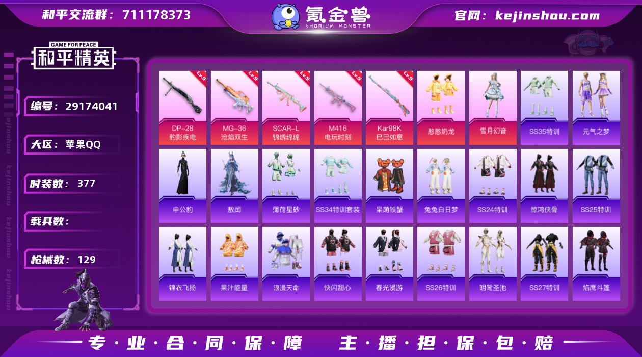 【2粉装5特效枪憨憨奶龙雪月幻音】 苹果Q区-35640热力值-8印记-96套装-129枪皮 【2粉装】 憨憨奶龙 雪月幻音【5特效枪】 SCAR-L-锦绣绵绵(5级) DP-28-豹影疾电(5级) MG-36-沧焰双生(5级) Kar98K-巳巳如意(5级) M416-电玩时刻(5级)【4热门】 浪漫天命 MG3-乌木金纹 Kar98K-彩虹符号 M416-糯团青竹 营地ID:928795600