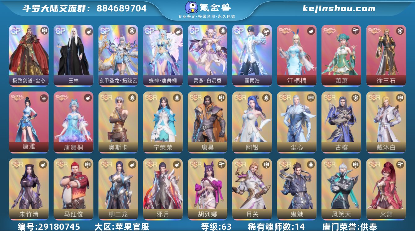 天斗庆典 · iOS🍎折扣服|续充享7折!新区精品高性价比号 · 主流魂师齐全 · 养成轻松! ⭐【魂师优质 开局即爽】 主流魂师齐全,彩五剑仙 + 幻金 + 红五神三,核心输出拉满,推图PK都顺畅! 🏆【封号出众 属性加分】 主神 + 神赐 + 灵猫 + 织金!多项顶级封号加持,战力与颜值并存! ✨【幻金实用 搭配合理】 剑仙幻金 + 小白四幻金 + 许三石四幻金 + 情侣骨等,关键资源到位,实战表现稳定! 💎【资源丰富 养成无忧】 多神环 + 多高年份凶兽环,属性搭配优异 双月卡剩余两个月,每日福利持续领 背包资源丰厚,提升空间充足 🎯真正新手友好号,折扣服续充7折更划算,轻松入坑无压力! 💰仅888,手慢无!适合想长期养成、轻松体验的玩家!!
