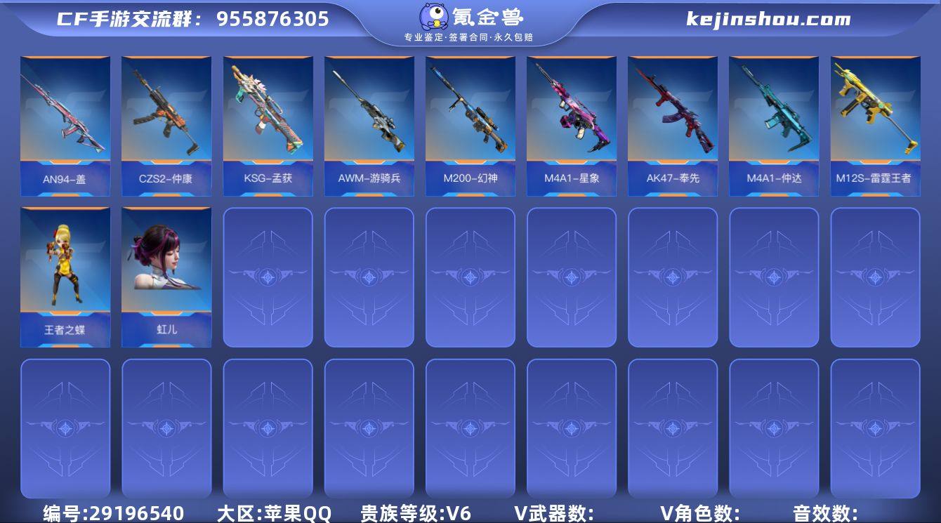 苹果Q☝贵族6☝虹儿☝AK47-奉先-无双三件套☝M4A1-星象☝AWM一游骑兵☝M4A1-仲达☝AN94-盖☝M200-幻神☝MK47-鼓龙-白昼☝CZS2-仲康☝王者之蝶☝M12S-雷霆王者☝KSG-孟获☝狙击枪线-江东骇虎☝狙击枪线-遁天梭☝狙击枪线-荣耀☝详细见图☝
