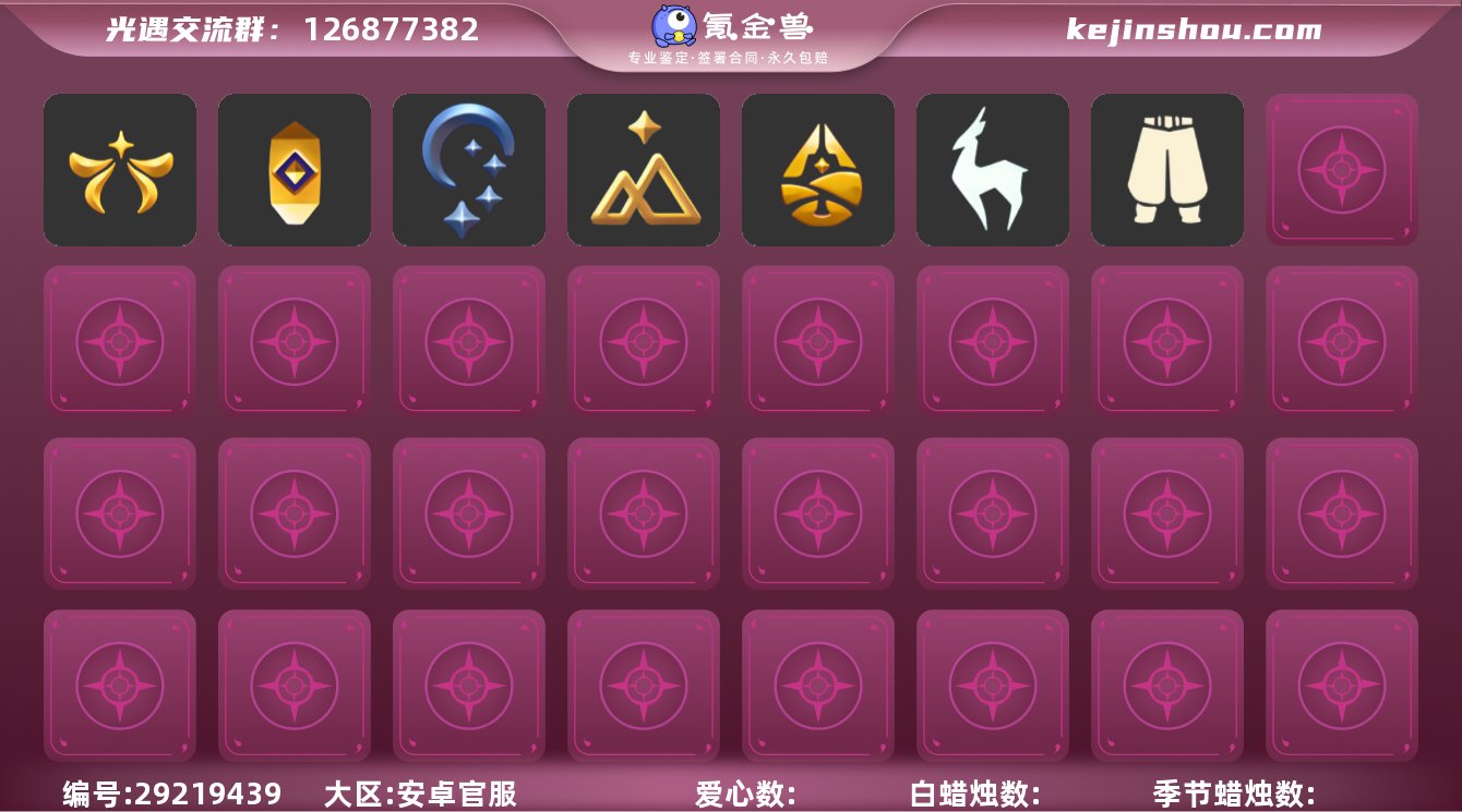 华为 手机账号 3珍稀物品 14毕业季 6毕业图 11蜡烛 【珍稀物品】白枭(帝企鹅发),透明蝶翼斗,彩虹围巾(五塑彩带斗) 【季节已毕业】迁徙季,青鸟季,双星季,潜海季,表演季,破晓季,欧若拉季(欧若拉),追忆季,夜行季,拾光季,归巢季,九色鹿(九色鹿季),姆明季,彩染季 【完成地图】晨岛,云野,雨林,霞谷,墓土(暮土),禁阁 【礼包】运动鞋(跃动跑鞋),姆明饰品套装(姆明尾巴),海蓝波浪发型(海洋发型),南瓜(冥龙南瓜),巫师(巫师帽),绊爱(绊爱斗篷)(绊爱礼包),橘子(大橘大利),雪花(雪花发夹),贝壳(贝壳发饰),兔子(玉兔头饰)(玉兔发饰)(兔子发饰),大耳狗发饰(迷你大耳狗发饰),四叶草(四叶草头饰),星月头饰(星月头冠),彩虹耳钉(彩虹耳饰),枯角(巫树犄角),鹿角(圣诞鹿角),创始人(创始人斗篷),蝙蝠套(蝙蝠斗篷)(南瓜头),蜘蛛斗(蛛丝斗篷)(蛛网斗篷),瑞雪(瑞雪斗篷)(暖冬瑞雪),白绒金(白雪斗篷),红伞(瑞气纸伞),秋千(情人秋千),猫背饰(猫咪背饰),大铁头 【裤子】筑巢季·裤子(设计师长袍),青鸟尊贵蓬头裤子(蓝色燕尾服),飞天裤(柔缎花边连)(九色鹿丝带裤),妮妮裙子(妮妮长裙),蓝绿裤(高领舞服),武士裤,背带裤,搓澡巾,击剑裤 【面具】夜行毕业面具(棕熊面具),呼吸面具(潜水面具),黄眉企鹅面具,辉光羚羊面具 【面饰】黑框眼镜(粗框眼镜),青鸟毕业面饰(青鸟面饰),红耳机 【项链】围巾(肩带) 【发型】单侧绑发(单边小辫),海蓝波浪发型,飞天盘发(九色鹿丸子头),留辫蘑菇头,虚荣,归巢毕业发型(五塑彩羽发),若笠(箬笠) 【头饰】平顶帽,蓝色音乐会(蓝色音乐符),牛仔帽(西部帽) 【斗篷】冥龙斗篷,燕尾斗篷,遥鲲斗篷(双翼遥鲲斗),粉红绒毛斗篷(绒毛斗篷),青鸟毕业斗篷(青鸟斗篷),彩染围巾斗篷,绿芽,海洋斗 【配饰】鲲灯(追忆之书),相机(季卡相机),小红伞(姆明红伞)(姆明大伞),姆明抱枕,二重奏挂画(合奏挂画),雨伞,高音钢琴(白色高脚钢琴)