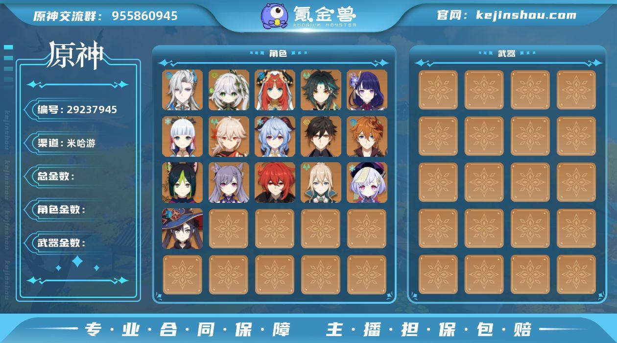 邮箱未绑定 59级 39金 26角色金13武器金 专武枫原万叶 专武达达利亚 瓦雷莎 那维莱特 雷电将军 甘雨 钟离 魈 神里绫华 纳西妲 妮露 闲云 3命提纳里 2命七七 1命迪卢克 1命刻晴 莫娜 琴 梦见月瑞希 星鹫赤羽 飞雷之弦振 冬极白星 精2和璞鸢 天空之脊 苍古自由之誓 精2风鹰剑 息灾 天空之刃 天空之傲 K25318 原神找回永久包赔