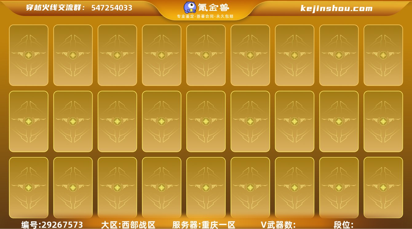 173V!传说暗裔!传说圣灵!幻神!周瑜皮肤!电竞教官云悠悠!6烈龙+斯泰尔-蝴蝶!可二次!C10204.西部战区.重庆1. 【可否排位】可排位 【账号状态】无封号 【区服】重庆一区 【VIP】 【游戏等级】Lv.100 大元帅 【段位排名】未上榜 【CF点】1786 【VVIP数量】172 【重要套装】竞技荣光套装/网剧冠军套装/雷暴套装 【重要角色】电竞教官-云悠悠/审判者/_零/_炫/_葵/_樱/雨棠/_春/ 【传说武器】传说暗裔/传说圣灵 【英雄武器】M200-竞技荣光/王者幻神-觉醒版/Barrett-毁灭/Barrett-极光/Barrett-朱雀/barrett-金色蔷薇/雷霆之怒/Kar98K-星神(2)/AWM-天龙/AWM-裁决(2)/M4A1-青龙/M4A1-雷神(2)/荣耀世冠-雷神/M4A1-死神/M4A1-黑龙(2)/M4A1-龙血(2)/M4A1-千变/M4A1-黑骑士(2)/黑骑士-海王/M4A1-雷霆/M4A1-玫瑰精灵/王者之势-觉醒版/王者冰魄-觉醒版/王者风势-觉醒版/王者之幻-觉醒版/HK417-朱雀/_Scar Light-白虎/王者白虎-觉醒版/AK47-火麒麟/荣耀世冠-火麒麟/AK47-无影/AK47-雷暴/AK47-黑鲨/AK47-黑武士/黑武士-CF网剧冠军/AK47-机械迷城/QBZ03-金色蔷薇/9A91-烈火/王者之烈-觉醒版/RPK-盘龙(5)/汤姆逊-烈龙(7)/AA-12-雷霆/加特林-炼狱(2)/悦蓝-惊涛骇浪-觉醒版/COP 357-雷霆王者-觉醒版/雷霆之契/沙鹰-天神(2)/天神-CF网剧冠军/沙鹰-修罗(5)/柯尔特-电竞装甲/柯尔特-竞技荣光(2)/USP-雷暴(2)【王者武器】王者星神/高爆手雷-雷霆王者 【小人枪】天龙-曼陀罗/毁灭-孙三炮/裁决-雪莉杨/斯泰尔-蝴蝶/迷你深渊冰龙(2)/迷你裂空之翼(2)/迷你牛牛/冰火魔兽 【重要武器皮肤】幻神-周瑜皮肤/毁灭-冠军之怒/毁灭-CFS2020/毁灭-星空/毁灭-荣耀之怒/毁灭耀金皮肤/毁灭-风暴/毁灭-黑大圣皮肤/极光-能量核心/天龙-CFSTAR/天龙-能量核心/火麒麟-CFSTAR/火麒麟-平天大圣/火麒麟-冠军之心/AK47-黑武士-361/M4A1-千变-孔明皮肤/雷神-...