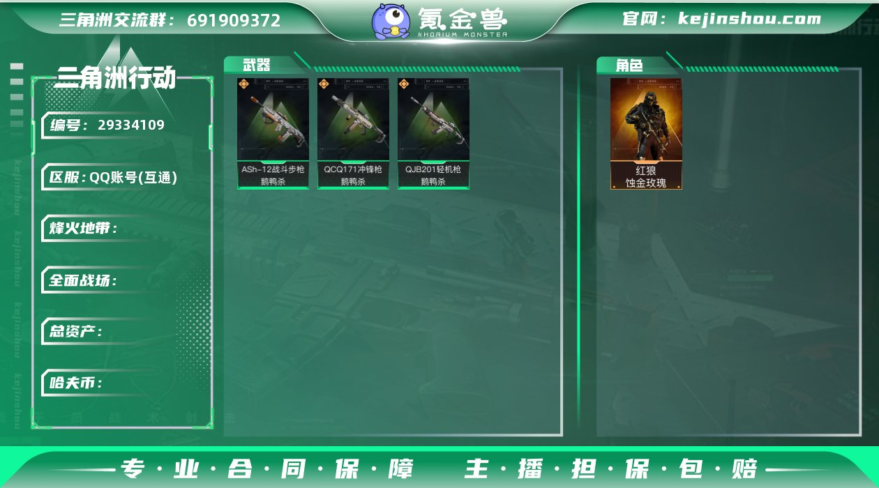 YXB 特价秒杀 【总资产39.7m/流动资产32.5m/哈夫币1852k/行动等级53】【红狼-蚀金玫瑰】【特勤处-仓库5-训中4-靶场4】【部门-21111】【鹅鸭杀捆绑包】【s6赛季通行证已开】