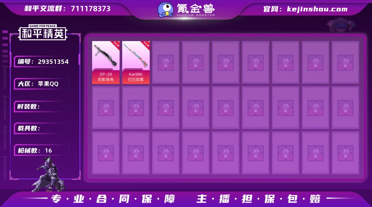 UHP4629 苹果Q 可二次 双字ID:祌哥 2特效枪 7套装16枪皮 3128热力值 历史英勇黄金Ⅲ Kar98K-巳巳如意 (3级) DP-28-豹影疾电 (3级) 漫步者 深海小丑鱼背包 和平精英账号