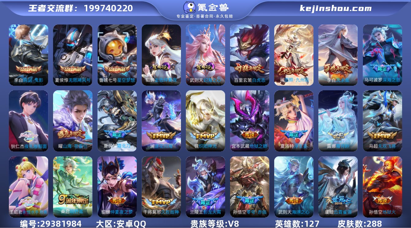 王者荣耀v9 4水晶23传说 有武则天 11w贵族积分 皇冠QQ 银标玄策银标关羽银标夏洛特