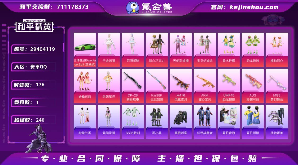 18印记 粉熊包 甜心三姐妹 老六服 可改实名 10粉装 7特效枪 1车 176套装 240枪械 荧海星豚 千金淑猫 香水柠檬 呆萌星弥 恐龙拽拽 妙趣可丽 天使彩虹糖 甜心巧克力 宝贝奶油派 橘柚倾心 雪山精英 兰博基尼AventadorSVJ翡翠绿 AKM-甜心宝贝满级 M416-风花雪月满级 UMP45-恐龙拽拽满级 AUG-妙趣可丽满级 MG3-梦幻舞会满级 DP-28-豹影疾电满级 王牌印记18 热力值80536 N4964和平精英买号永久包赔带二次营地ID:717466723