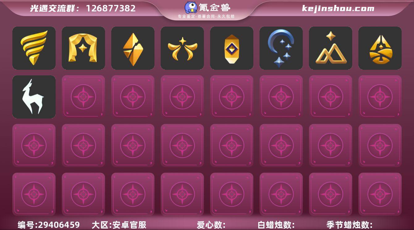 [17188184]安卓官服 手机账号 3珍稀物品 12毕业季 6毕业图 348蜡烛 【珍稀物品】白枭(帝企鹅发),透明蝶翼斗,彩虹围巾(五塑彩带斗) 【季节已毕业】集结季,潜海季,表演季,破晓季,欧若拉季(欧若拉),追忆季,夜行季,拾光季,归巢季,九色鹿(九色鹿季),二重奏季,姆明季 【完成地图】晨岛,云野,雨林,霞谷,墓土(暮土),禁阁 【礼包】青衫落拓礼包,水母(水母肩饰),姆明饰品套装(姆明尾巴),绊爱(绊爱斗篷)(绊爱礼包),橘子(大橘大利),雪花(雪花发夹),贝壳(贝壳发饰),兔子(玉兔头饰)(玉兔发饰)(兔子发饰),四叶草(四叶草头饰),创始人(创始人斗篷),围巾(小王子斗篷)(小王子围巾),欧若拉之翼,白绒金(白雪斗篷),吉他(音韵吉他)(白吉他),秋千(情人秋千),小狐狸(狐狸背包),雪花球(雪花水晶球),大铁头 【裤子】妮妮裙子(妮妮长裙),蓝绿裤(高领舞服),武士裤,背带裤 【面具】黄眉企鹅面具,夜行毕业面具(棕熊面具),呼吸面具(潜水面具) 【面饰】黑框眼镜(粗框眼镜),红耳机 【项链】围巾(肩带) 【发型】小王子发型,单侧绑发(单边小辫),留辫蘑菇头,飞天盘发(九色鹿丸子头),虚荣,归巢毕业发型(五塑彩羽发),若笠(箬笠) 【头饰】平顶帽,蓝色音乐会(蓝色音乐符),行军锅头盔(六边锅帽子)(双耳锅帽子),牛仔帽(西部帽) 【斗篷】领主红斗篷(暗红斗篷),冥龙斗篷,燕尾斗篷,黄色连帽披风(连帽斗篷)(斜边队长斗篷),遥鲲斗篷(双翼遥鲲斗),粉红绒毛斗篷(绒毛斗篷),绿芽,海洋斗 【配饰】鲲灯(追忆之书),相机(季卡相机),小红伞(姆明红伞)(姆明大伞),姆明抱枕,雨伞,高音钢琴(白色高脚钢琴)