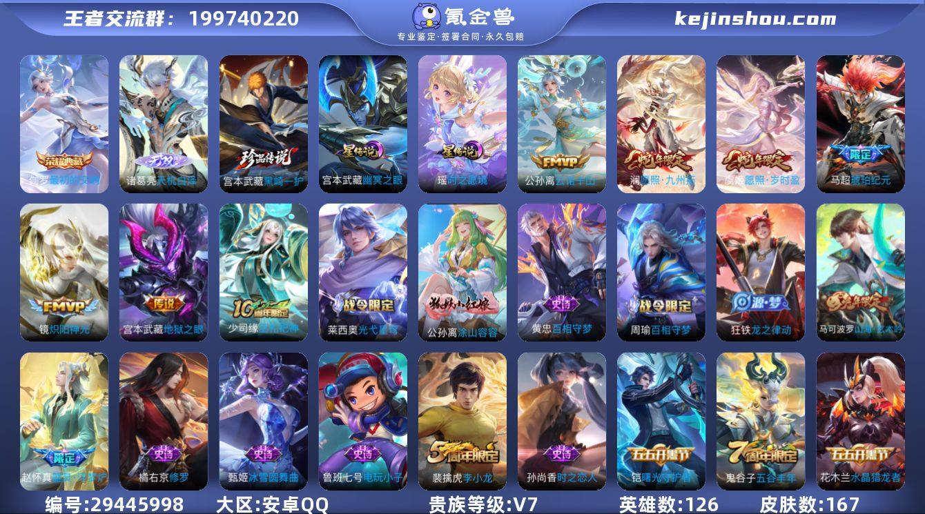 167皮肤,1典藏,一珍品传说,一无双,六传说,2星元,剩下的上号看吧,随便砍价。