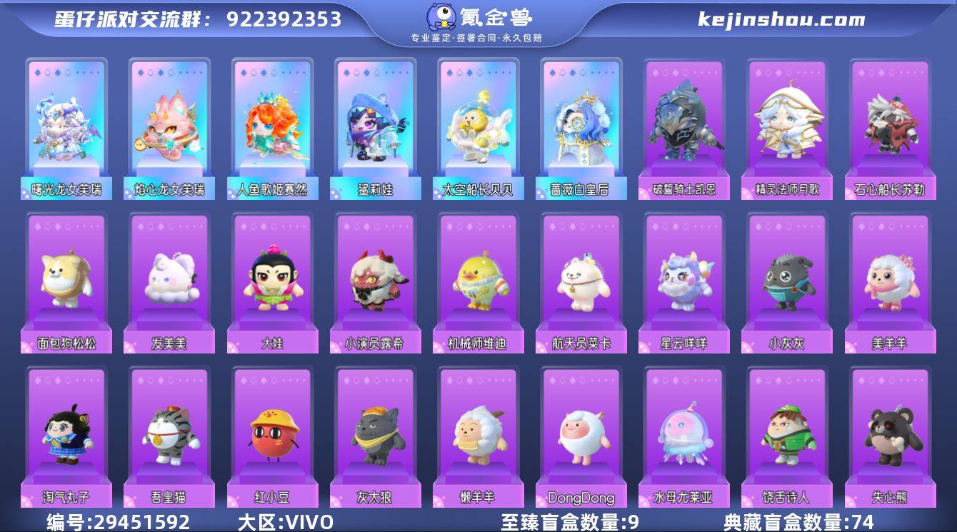 【dan585】VIVO账号 至臻皮肤数量:9 典藏皮肤数量:74 账号类型:手机账号 换绑冷却:无冷却 网易支付状态:未注册 热门装扮:美羊羊 小灰灰 星云咩咩 机械师维迪 航天员莱卡 失心熊 水母尤莱亚 仓鼠米仔 DongDong 红小豆 灰太狼 懒羊羊 吾皇猫 淘气丸子 狗蛋阿甜 焰心龙女芙瑞 人鱼歌姬赛然 太空船长贝贝 蔷薇白皇后 鲨莉娃 饶舌诗人 大娃 破誓骑士凯恩 精灵法师月歌 发美美 石心船长苏勒 面包狗松松 小演员露希 曙光龙女芙瑞 载具装扮:星河弹弹车 翅膀:流光龙翼 月白之隐