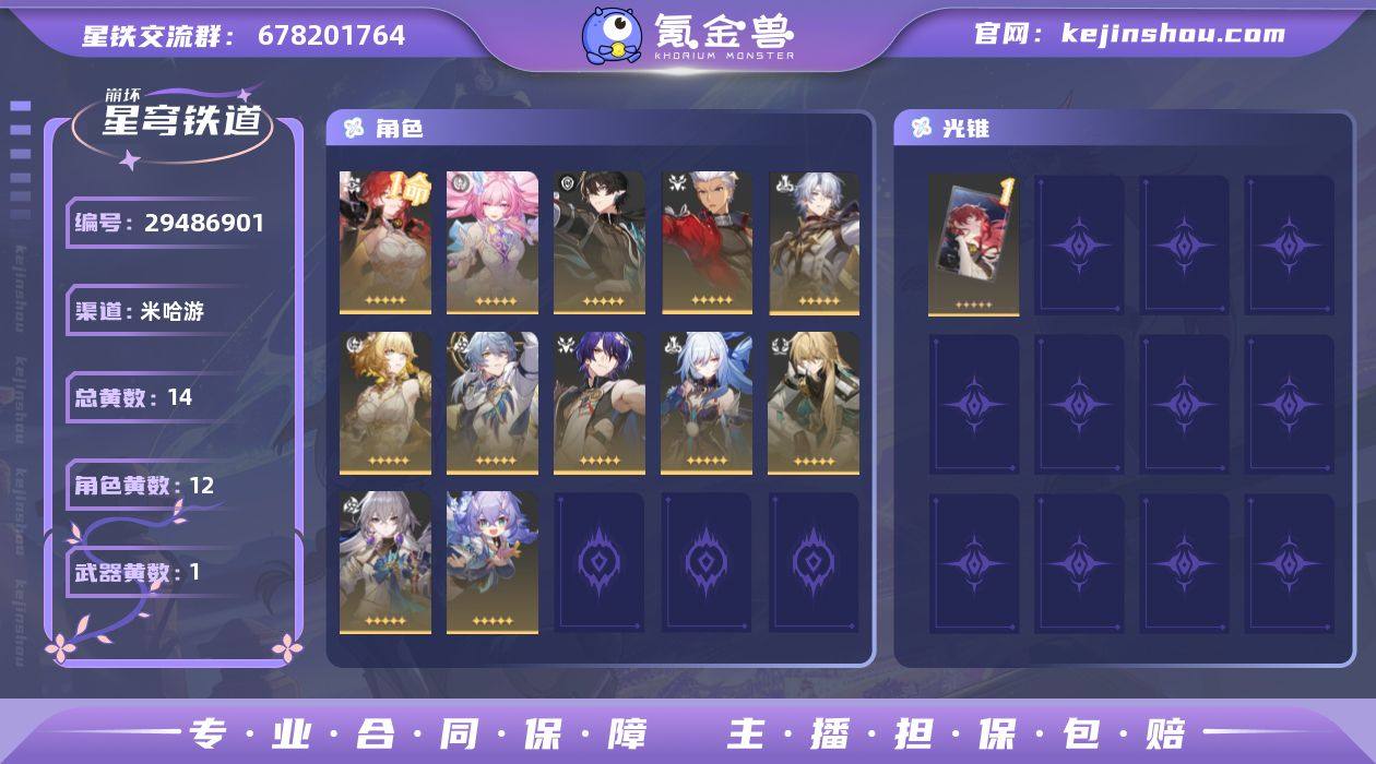 官服:10级女主,旅伴金灵还在呢,昔涟,白厄,星期日,阿格莱雅,罗刹,镜流,提供游戏实名信息,可绑定游戏大手机,活邮可换绑