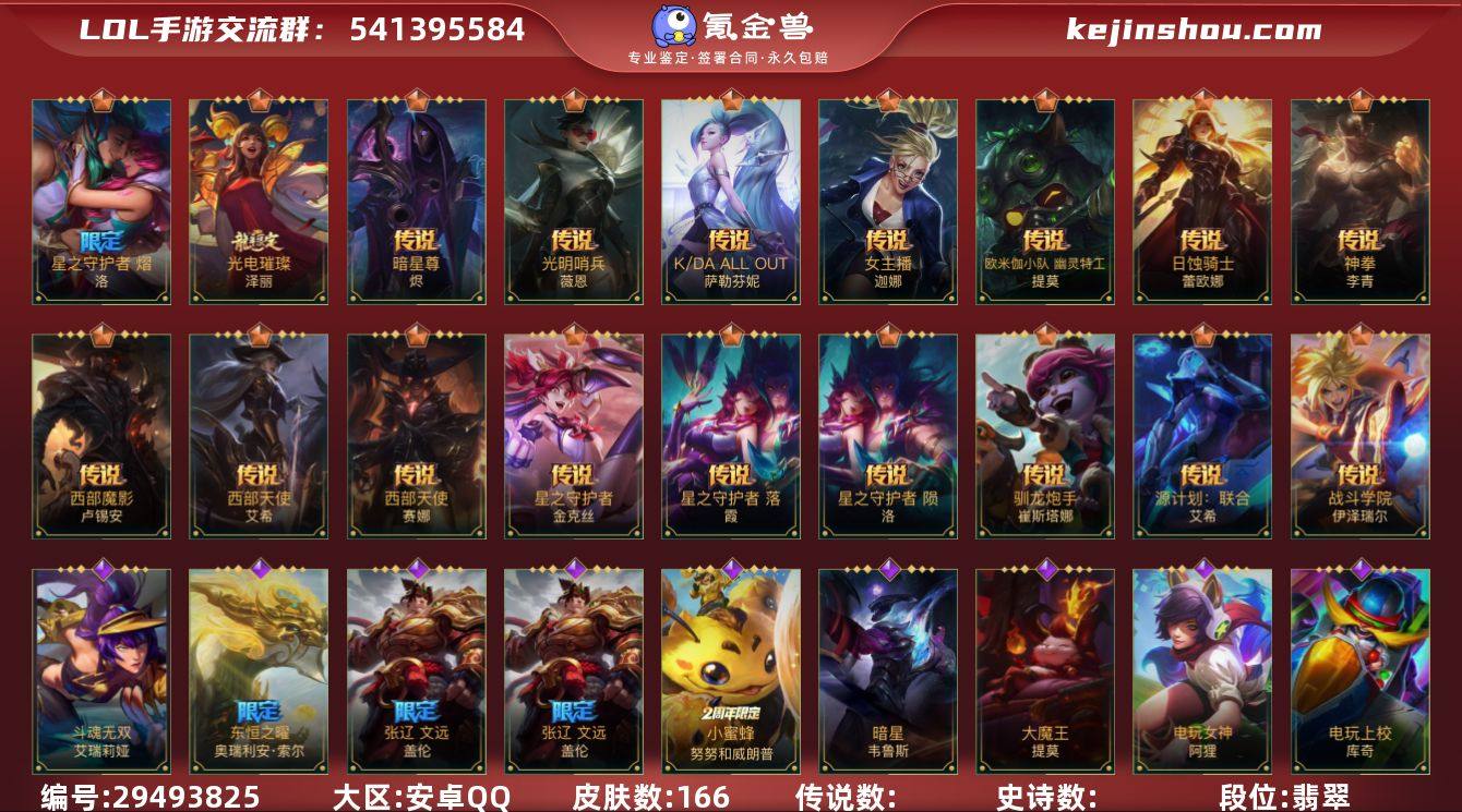 131英雄-166皮肤,龙冕神策 吉格斯,神拳 李青,战斗学院 伊泽瑞尔,源计划:联合 艾希,星之守护者 金克丝,暗星尊 烬,K/DA ALL OUT 萨勒芬妮,女主播 迦娜,西部魔影 卢锡安,西部天使 赛娜,光电璀璨 泽丽,星之守护者 陨 洛,星之守护者 落 霞,驯龙炮手 崔丝塔娜,日蚀骑士 蕾欧娜,欧米伽小队 幽灵特工 提莫,西部天使 艾希,光明哨兵 薇恩,摄魂猎手 凯隐,张辽 文远 盖伦,星