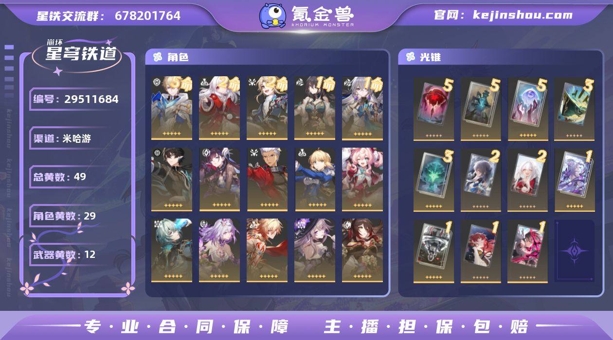 开拓等级:70 开拓者性别:男 总黄数:49 星轨专票:0 五星角色数:29 5命杰帕德,2命克拉拉,2命彦卿,1命阮•梅,1命布洛妮娅,0命丹恒·腾荒,0命海瑟音,0命Archer,0命Saber,0命风堇,0命那刻夏,0命遐蝶,0命万敌,0命大黑塔,0命忘归人,0命乱破,0命飞霄,0命流萤,0命知更鸟,0命黄泉,0命黑天鹅,0命真理医生,0命镜流,0命卡芙卡,0命刃,0命罗刹,0命希儿,0命瓦尔特,0命白露 五星光锥数:12 5精孤独的疗愈,5精记一位星神的陨落,5精记忆永不落幕,3精不息的演算,3精星海巡航,2精但战斗还未结束,2精无可取代的东西,1精让告别,更美一些,1精行于流逝的岸,1精银河铁道之夜,1精以世界之名 邮箱状态:不送邮 卖家说:dot队完全成型,0+1遐蝶
