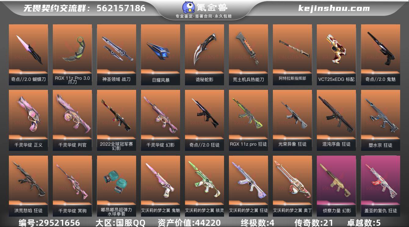 皮肤资产价值: 44220
