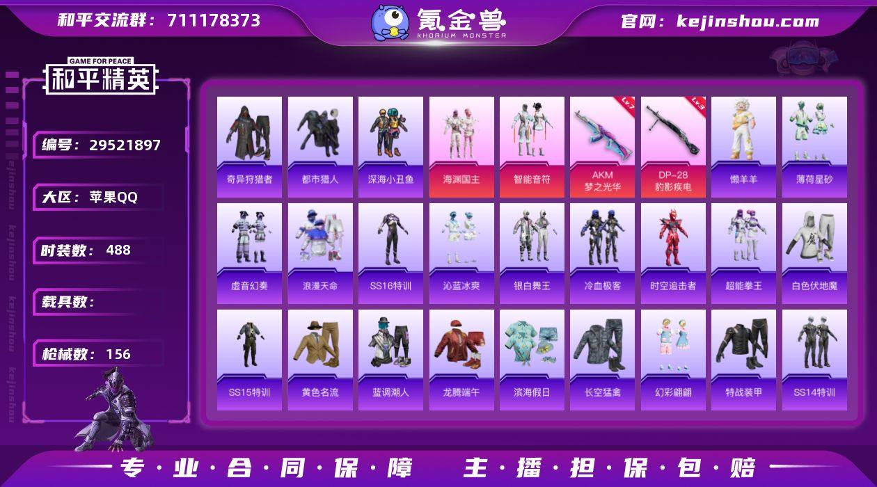 热力值:46172 时装数:488 枪械数:156 战备数:108 游戏等级:63 王牌印记:8 卓越印记:0 传奇印记:0 绝世印记:0 海渊国主,智能音符 七级AKM-梦之光华,三级DP-28-豹影疾电 千面幻镜飞行器,百万伏特降落伞,碧影闪光降落伞,葫芦兄弟降落伞,童趣迷兔降落伞,香水柠檬降落伞,音爆索尼克降落伞,炙焰牛王降落伞 奇异狩猎者,懒羊羊,薄荷星砂,暗金炫舞,暗影哥特,冰川特警,冰冻风暴,暴风机械师,滨海假日,白色伏地魔,冰爽海盐,长空猛禽,潮流游乐家,超能拳王,都市猎人,电音之王,飞驰魅影,飞狐塔尔斯,福星高照,飞行日记,格斗先锋,光之冒险,贵族骑装,幻彩翩翩,虎虎生威吉莉,湖蓝色名流,黑色伏地魔,灰色格斗者,黄色名流,海上生明月,黄色运动,红色运动,幻世战舞者,和煦暖阳,捷德奥特曼,酒红色名流,娇憨猪猪,竞技达人朋克,竞技名士,吉莉礼服,极速竞梦,金耀舞者,酷潮明星,科技之星,狂沙舞者,空投萌叽,蓝调潮人,六六大吉,黎明保卫者,浪漫天命,镭射皇者,蓝色运动,龙腾端午,冷血极客,冷焰舞者,漫步者,猛禽,妙红点点,萌黄之夏,魅力单车,麻辣教官,懵萌河马,萌趣咩咩,萌趣颜团子,逆风勇士,霓虹极客,怒火燎原,柠萌假日,牛气冲天,牛气满满,破晓战魂,青春冒险家,轻风白浪,沁蓝冰爽,绮丽涂鸦,深海小丑鱼,时空追击者,深蓝色名流,神秘领域,神气柴柴,SS12特训,SS13特训,SS14特训,SS15特训,SS16特训,SS17特训,SS18特训,SS19特训,SS20特训,SS21特训,SS22特训,SS23特训,SS24特训,探宝勇士,甜蜜菠萝,甜蜜熊情侣,豚鼠丹丹,特训学院,甜心亚梦,田园牧歌,特战装甲,无烬之地,完美偶像,王牌教练,娴静芝兰,迅捷之星,炫蓝之夏,夏日音浪,虚音幻奏,银白舞王,原初圣火,异彩先驱,音速流光,玉兔迎春,英勇保护者,鹰眼刺客,治愈之星 AC-VAL-甜心亚梦,AKM-冰凉西瓜,AKM-彩虹符号,AKM-虎虎生威,AKM-萌趣颜团子,AKM-霓虹街区,AKM-夜灯,AKM-影袭,AKM-灼热熔岩,AMR-妙红点点,AUG-青春冒险家,AWM-恐龙拽拽,AWM-音爆索尼克,DBS-时空追击者,DBS-甜心亚梦,DP-28-甜心亚梦,DP-28-原初圣火,G36C-懵萌河马,G36C-时空追击者,GROZA-彩虹符号,GROZA-懵萌河马,GROZA-田园牧歌,GROZA-异彩先驱,GROZA-影袭,GROZA-治愈之星,Kar98K-彩虹符号,Kar98K-电玩视界,Kar98K-飞驰魅影,Kar98K-红色方程式,Kar98K-炫彩节奏,Kar98K-影袭,M16A4-幻世战舞者,M16A4-甜心亚梦,M16A4-夜灯,M249-百万伏特,M249-镭射皇者,M249-妙红点点,M24-奇异狩猎者,M24-炫彩节奏,M24-影袭,M24-治愈之星,M416-滑板小狐,M416-蓝色火焰,M416-糯团青竹,M416-夜灯,M762-暗夜鎏金,M762-镭射皇者,M762-烈焰拳霸,M762-牛气冲天,M762-奇异狩猎者,M762-天降萌叽,MG3-暗夜行者,MG3-幻世战舞者,MG3-妙红点点,蜜獾-天降萌叽,蜜獾-娇憨猪猪,Mini14-耀粉歌者,Mini14-龙宫之主,Mini14-原初圣火,Mini14-异彩先驱,Mini14-千面幻镜,Mk14-治愈之星,MK20-H-墨染幽兰,Mk47-百万伏特,MK47-妙红点点,Mk47-青春冒险家,MP5K-飒粉甜心,MP5K-异彩先驱,莫辛纳甘-懵萌河马,P