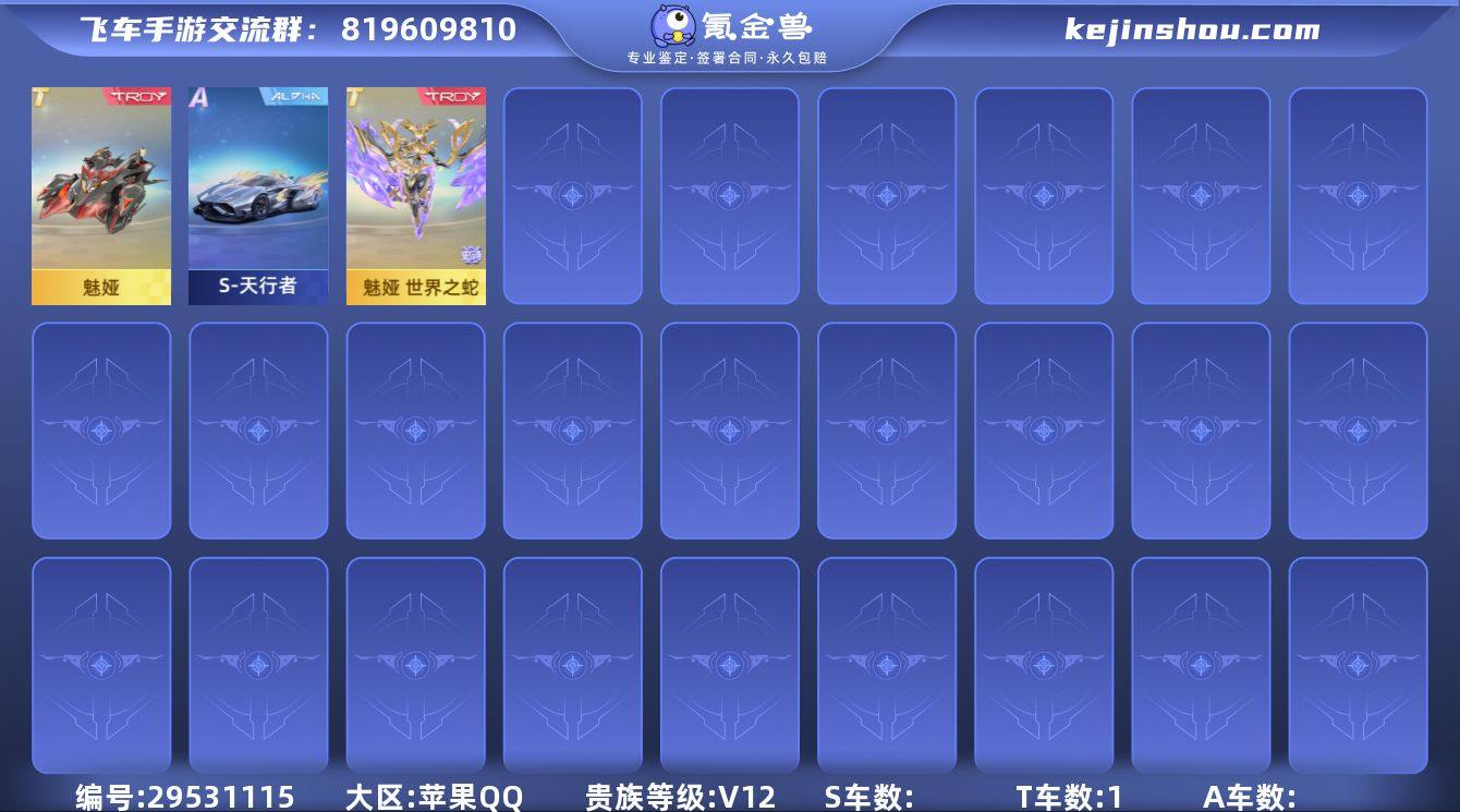 贵12满改最强机甲魅娅/世界之蛇全套有特殊pose特效不错毕竟是首款双变形机甲,L清加天行者各种A车,号上附带千多钻石,男女多套紫色衣服,这号等级低段位也不高新手练手必备好上手又是实战机甲还带皮肤这个价再也买不到这种贵12的号了贵族高有排面,176苹果944可转安卓