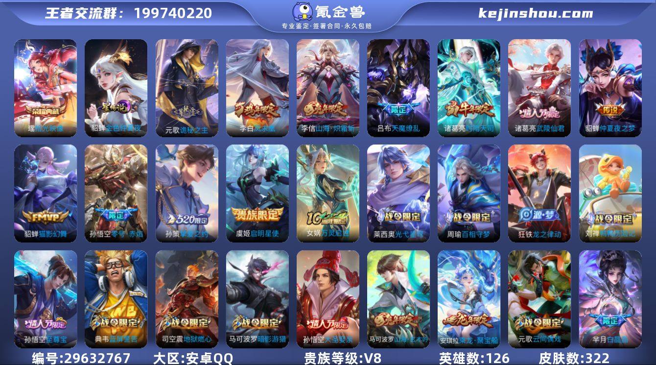 【极品女号打野号瑶典藏11个高质量传说多限定至尊宝女皮肤多1传说天幕4个个性按键】实名: 可修改 性别: 女号 贵族等级: V8 英雄数: 126 皮肤数: 322 荣耀水晶: 拾光映像 星传说: 金色仲夏夜 传说皮: 猫影幻舞,仲夏夜之梦,零号·赤焰,挚爱之约,山海·炽霜斩,诡秘之主,神树通天 限定皮: 遇见飞天,李小龙,游园惊梦,梁祝,御风骁将,时雨天司,魔法小厨娘,白晶晶,天魔缭乱,飞衡,天狼征服者,神奇女侠,凤求凰,玄武志,至尊宝,一生所爱,武陵仙君,大圣娶亲,霸王别姬-虞姬,高山流水,匿光决锋者,五谷丰年,山海·玄木吟