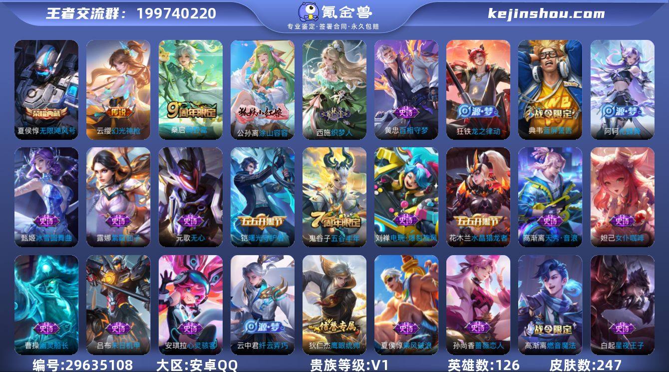 【特价出售】安卓q-V-247皮肤1典藏2传说 【典藏】 无限飓风号 【传说】 幻光神枪 鸣野蒿 【热门】涂山容容 蓝屏警告 朔望之晖 冰冠公主 原初追逐者 梁祝 苍穹之光 织梦人 黄忠百相守梦 燃音魔法 天秀音浪 电玩爆裂旋风 原初探秘者 水晶猎龙者 猫狗日记男 金属风暴 曙光守护者 特工战影 蔷薇恋人 黄金分割率 胡桃夹子 舞动绿茵 逐浪之夏 心灵战警 紫霞仙子 功夫厨神 心灵骇客 圣诞恋歌 幽灵船长 乘风破浪 圣诞狂欢 末日机甲男 星夜王子 节奏热浪 绅士熊喵 暗夜贵公子 偶像歌手 街头霸王 摇滚巨星 缤纷独角兽 鬼剑武藏 德古拉伯爵 冰雪圆舞曲 花好人间 凯尔特女王 狰 饕餮 烛龙 重明 穷奇 御狮 御霄 御旌 御銮 混沌棋 疑决卦 醍醐杖 万华元夜 东方不败 克喵 演武夺筹 群星魔术团程咬金 驱傩正仪 千军破阵 拳王 沙漠行僧 女仆咖啡 金庭之子 霸王丸 大漠名商 敏锐之力 云中旅人 丁香结 海盐诗旅 皇家上将 擒涛扼浪 探海日志 水果甜心 古海寻踪 天穹祈灯 无心 荣光圣徽 纤云弄巧 五谷丰年 乱世虎臣 鹰眼统帅 魔术师 顽趣梦奇 126英雄-营地ID:407796587