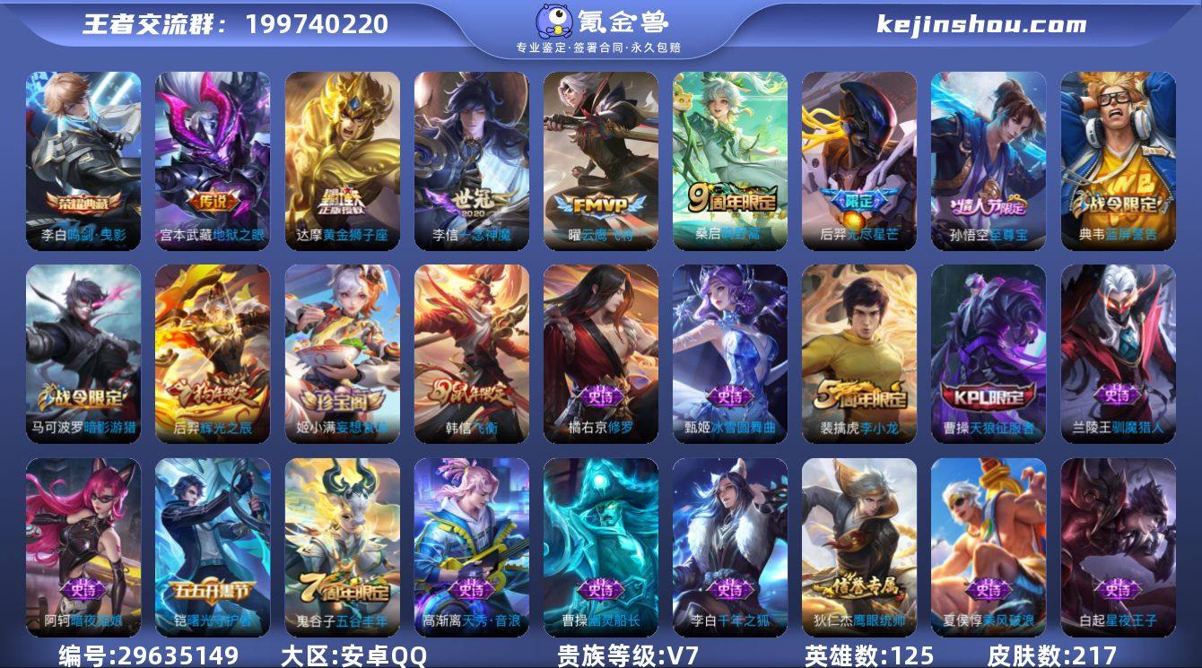 【特价出售】安卓q-V-217皮肤1典藏6传说 【典藏】 鸣剑曳影 【传说】 鸣野蒿 无尽星芒 云鹰飞将 一念神魔 黄金狮子座 地狱之眼 【热门】至尊宝 飞衡 天狼征服者 辉光之辰 猎兽之王 蓝屏警告 神迹守卫钟馗 狮舞东方 朔望之晖 冰冠公主 暗影游猎 原初追逐者 黎明之约 梁祝 暗夜猫娘 天秀音浪 原初探秘者 李小龙 猫狗日记男 金属风暴 地狱岩魂 白昼王子 特工魅影 曙光守护者 特工战影 黄金分割率 胡桃夹子 妄想食味 逐浪之夏 修罗 千年之狐 圣诞恋歌 幽灵船长 乘风破浪 圣诞狂欢 星夜王子 节奏热浪 天才门将 绅士熊喵 偶像歌手 街头霸王 缤纷独角兽 鬼剑武藏 德古拉伯爵 赤莲之焰 冰雪圆舞曲 花好人间 烛龙 重明 穷奇 御狮 御霄 御旌 御銮 朔风刀 混沌棋 疑决卦 醍醐杖 东方不败 演武夺筹 拳王 沙漠行僧 金庭之子 霸王丸 大漠名商 敏锐之力 云中旅人 丁香结 海盐诗旅 皇家上将 擒涛扼浪 魅力维加斯 探海日志 水果甜心 古海寻踪 天穹祈灯 江河有灵 游园惊梦 五谷丰年 繁星吟游 乱世虎臣 驯魔猎人 鹰眼统帅 魔术师 顽趣梦奇 125英雄-营地ID:446171069