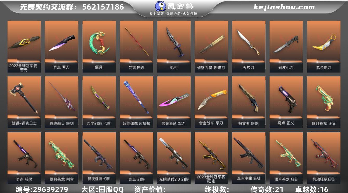 R32773有二次 剩余点券:92 Lv420 ,皮肤总价值125720,钻石III,总皮肤196,刀皮22枪皮174(终极5传奇20卓越31),套装9(终极1传奇4卓越4),2023全球冠军赛套装,具体详情看图