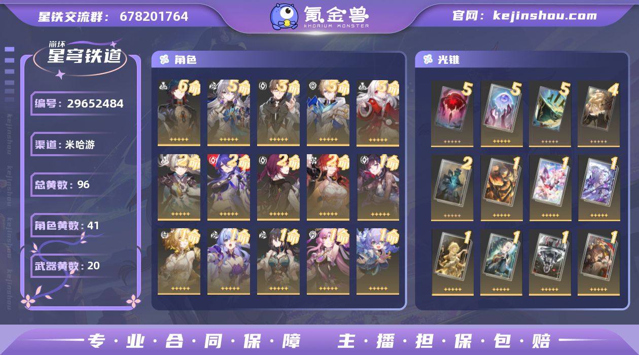 开拓等级:70 开拓者性别:男 总黄数:96 星轨专票:0 五星角色数:41 6命刃,5命布洛妮娅,3命瓦尔特,3命杰帕德,3命克拉拉,2命流萤,2命黄泉,2命卡芙卡,2命姬子,1命海瑟音,1命阿格莱雅,1命知更鸟,1命阮•梅,1命符玄,1命白露,1命彦卿,0命昔涟,0命丹恒·腾荒,0命长夜月,0命Archer,0命Saber,0命白厄,0命风堇,0命那刻夏,0命遐蝶,0命缇宝,0命大黑塔,0命忘归人,0命星期日,0命飞霄,0命云璃,0命翡翠,0命砂金,0命花火,0命黑天鹅,0命真理医生,0命藿藿,0命丹恒·饮月,0命罗刹,0命银狼,0命希儿 五星光锥数:20 5精记一位星神的陨落,5精记忆永不落幕,5精星海巡航,4精如泥酣眠,2精孤独的疗愈,1精理想燃烧的地狱,1精愿虹光永驻天空,1精让告别,更美一些,1精将光阴织成黄金,1精梦应归于何处,1精行于流逝的岸,1精镜中故我,1精她已闭上双眼,1精到不了的彼岸,1精于夜色中,1精但战斗还未结束,1精制胜的瞬间,1精无可取代的东西,1精时节不居,1精不息的演算 邮箱状态:不送邮