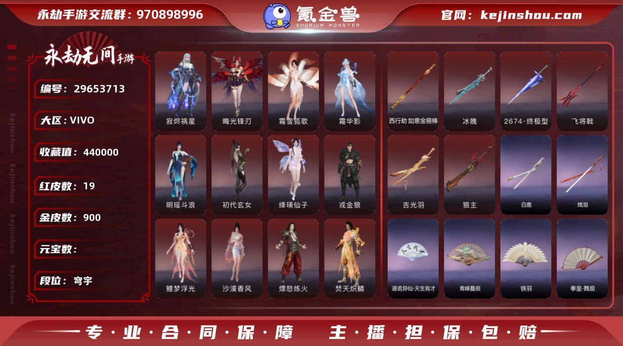 vivo渠道服,不玩退游了急出可以小刀,号上皮肤基本都有,等后面出转官服可以和端游绑定互通皮肤
