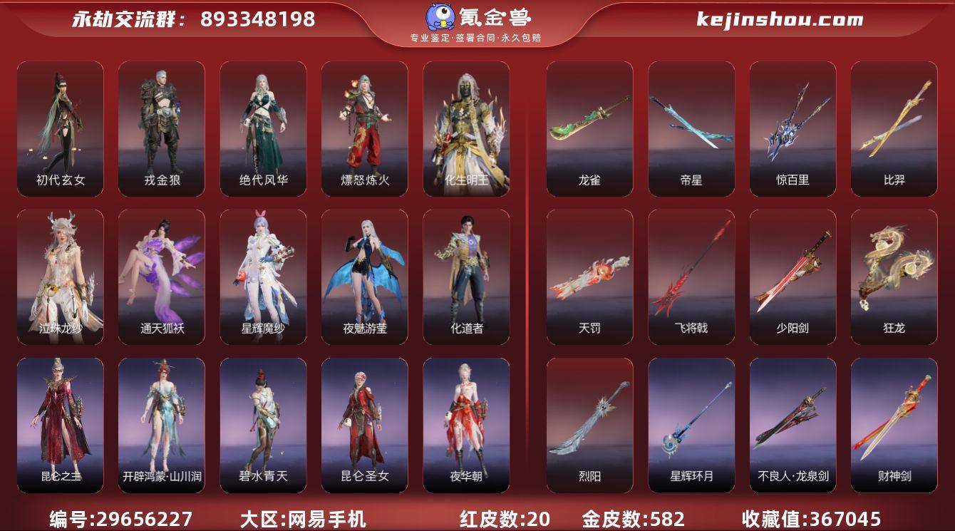 红皮数:20 黄皮数:582 收藏值:367045 等级:434 三排段位:蚀月 通行证:未升级 初代玄女,戎金狼,绝代风华,熛怒炼火,化生明王,泣珠龙纱,通天狐袄,星辉魔纱,夜魅游莹,化道者 龙雀,帝星,惊百里,比羿,天罚,飞将戟,少阳剑,狂龙,烈阳 墨离 卖家说:不想玩了没时间可小刀