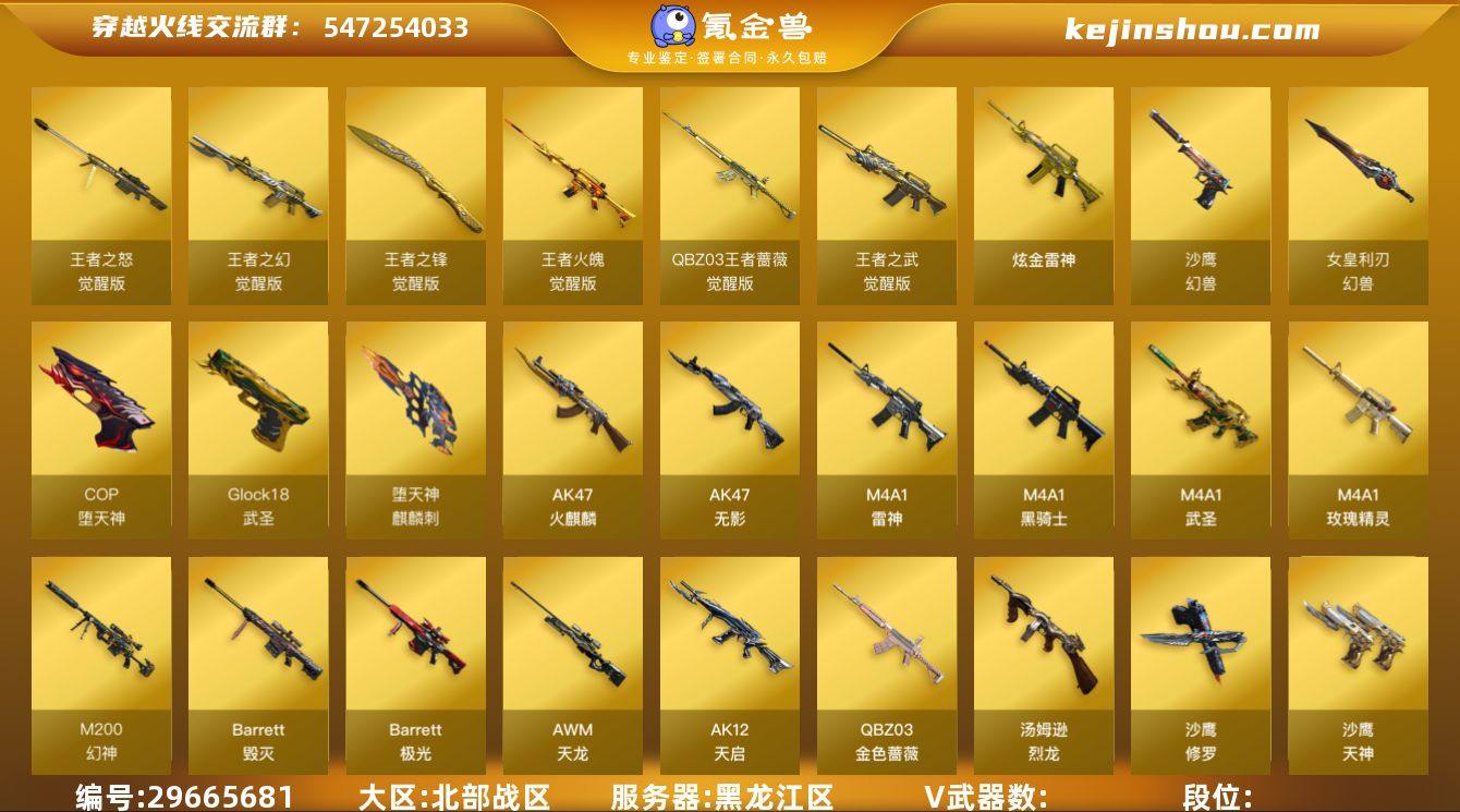 【7】99V/100级/元帅/24王者/10炫金/3英雄/QBZ03-金色蔷薇/M200-幻神/死亡之眼/C.A.T/牛牛-AK47/M4A1-黑骑士/汤姆逊-烈龙/RPK-盘龙/加特林-炼狱/雷神-小红/火麒麟-绝迹/沙鹰-修罗/金刚伞/王者之鲨/王者之戮/天启-悦智/王者之势/玫瑰精灵-悦动/盘龙-悦心/炼狱-悦蓝/王者之魂/王者之击/炫金黑骑士/炫金黑龙/炫金雷神/炫金黑武士/炫金超新星/炫金天龙/炫金天神/炫金修罗/M4A1-黑骑士音效卡/雷神-暗月/雷神-能量核心/雷神荣耀之魄/火麒麟-雷神/火麒麟-平天大圣/毁灭-荣耀之怒/毁灭耀金皮肤/毁灭-星空/M4A1-千变-孔明皮肤/黑龙-能量核心/黑龙-暗月/黑骑士-暗月/无影-暗月/无影-能量核心/天启-暗月/战神-粉色甜心皮肤/战神-紫绶金章皮肤/战神-流金岁月皮肤/AK47-B-常胜将军-曹操/AK47-B-常胜将军-刘备/AK47-B-常胜将军-孙权/天龙-能量核心/AWM-天龙-传奇70KG/AWM-天龙-传奇白鲨/极光-能量核心/修罗-能量核心/天神-暗月/樱/瞳/电竞教官-云悠悠/王者之瞳/风暴女/虎妞/嘉年华灵狐/疾风/娟娟/龙儿-小淘气/兔囡囡/职业选手/智影/M4A1-雷神-精英刀锋/巴雷特-零-水下丽影/AWM-灵狐-15周年嘉年华/COP-旗袍/闪光弹-小乔/闪光弹-貂蝉/高爆手雷-大乔/6烈龙/冰龙粉碎者-白马银枪/激光毁灭者/阐释者/M4A1-千变/AK47-火麒麟/M4A1-黑龙/M4A1-雷神/AK47-无影/M4A1-死神/AK47-黑武士/AK12-天启/AK47-黑鲨/AK-47-猩红传说/AK47-B-战神/王者火魄-觉醒版/黑骑士-海王/AK47-B-常胜将军/AWM-天龙/Barrett-毁灭/Barrett-极光/AWM-裁决/王者之怒-觉醒版/沙鹰-天神/屠龙/龙啸/擎天/麒麟刺/擎天-竞技荣光/王者之锋-觉醒版/王者之击-觉醒版/高爆手雷-幻灵/闪光弹-幻灵/闪光弹-竞技荣光/烟雾弹-竞技荣光/亚洲杯纪念炫彩背包/冰冰企鹅背包-猛男专用/战舰背包/炫彩背包/超级背包/绿色巨人/灵魂忍者/变异宝贝/迷雾幽灵/夺命之镰/防化服/金色流光-枪王排...
