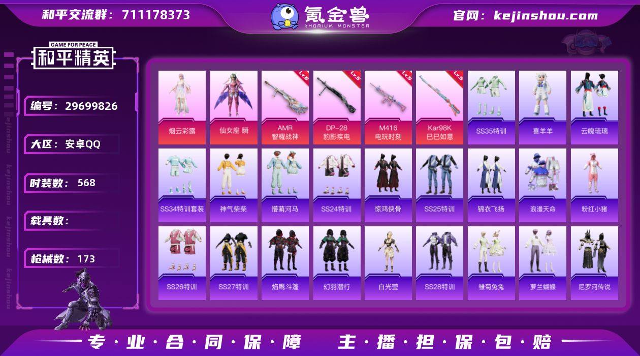 DJ496⭐极品素材号-2粉状4升级枪赠送王者113皮3传说/仙女座//烟云彩霞/尼罗河传说/临安公主/喜羊羊/都市丽猫/白光莹//阿努/浪漫天命/暗影哥特的眼罩/精神漫游眼镜/热血骑手面罩/浪漫天命面罩⭐电玩时刻5级/智耀战神6级/巳巳如意5级/豹影机电5机/幻影飞狐的头盔/幻彩电音的头盔/狂鲨疯刃的头盔/智耀战神的背包/千金淑猫的背包/雷霆特警的背包/45降落伞/热力值49228