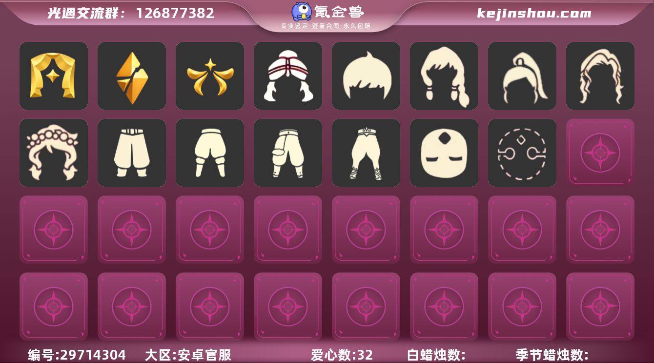 账号类型: 邮箱账号 季节已毕业: 梦想季,小王子季,表演季,集结季,夜行季,追忆季,归巢季,九色鹿季,彩染季 完成地图: 晨岛,云野,雨林,霞谷,暮土,禁阁 珍稀物品: 白枭,玫瑰花,彩虹围巾 礼包: 蝙蝠套,围巾,小狐狸,九色鹿角,鹿角,茶桌,瑞雪,吉他,橘子,贝壳,兔子,彩虹耳钉,四叶草,暗彩装扮,姆明饰品套装,献瑞折扇礼包,心心相印发饰礼包,小狗周年发饰,青衫落拓礼包,活力海牛礼包 裤子: 武士裤,背带裤,搓澡巾,击剑裤,王子服,飞天裤 面具: 凤凰面具,贴花面具,夜行毕业面具,黄眉企鹅面具,辉光羚羊面具 面饰: 红耳机 项链: 围巾 发型: 归巢毕业发型,若笠,虚荣,单侧绑发,小王子发型,留辫蘑菇头,飞天盘发 头饰: 行军锅头盔,蓝色音乐会,平顶帽 斗篷: 海洋斗,蟑螂斗,绿芽,粉红绒毛斗篷,遥鲲斗篷,黄色连帽披风,燕尾斗篷,彩染围巾斗篷 配饰: 雨伞,高音钢琴,玫瑰花,二重奏挂画,鲲灯 亮点: 【优质装备】:表演季,白枭(帝企鹅发),武士裤,梦想季,小王子季(王子季),归巢毕业发型(五塑彩羽发),行军锅头盔(六边锅帽子)(双耳锅帽子),高音钢琴(白色高脚钢琴),集结季,玫瑰花,夜行季,追忆季,彩虹围巾(五塑彩带斗),归巢季,九色鹿(九色鹿季),王子服(小王子套装),飞天裤(柔缎花边连)(九色鹿丝带裤),蟑螂斗(凤凰斗篷),围巾(肩带),二重奏挂画(合奏挂画),凤凰面具,贴花面具(丛林黑面具),夜行毕业面具(棕熊面具),黄眉企鹅面具,单侧绑发(单边小辫),小王子发型,留辫蘑菇头,粉红绒毛斗篷(绒毛斗篷),遥鲲斗篷(双翼遥鲲斗),黄色连帽披风(连帽斗篷)(斜边队长斗篷),燕尾斗篷,鲲灯(追忆之书),辉光羚羊面具,彩染季,飞天盘发(九色鹿丸子头),蝙蝠套(蝙蝠斗篷)(南瓜头),茶桌(花憩茶桌),红耳机,围巾(小王子斗篷)(小王子围巾),九色鹿角(神鹿祝福头饰)(神鹿祝福礼包),鹿角(圣诞鹿角),瑞雪(瑞雪斗篷)(暖冬瑞雪),吉他(音韵吉他)(白吉他),暗彩装扮(彩虹武士裤),姆明饰品套...