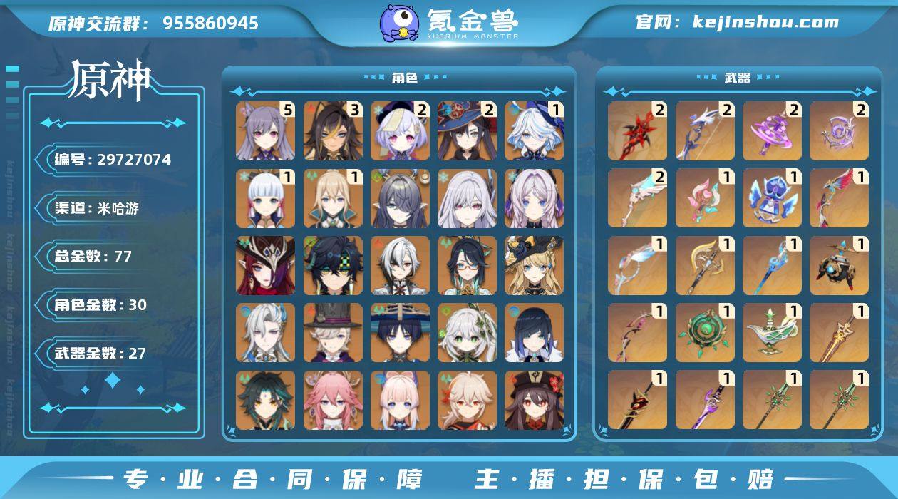 冒险等级:60 总黄数:77 男/女主:男主 5星角色数:30 5星武器数:27 纠缠之源数量:0 原石数量:452