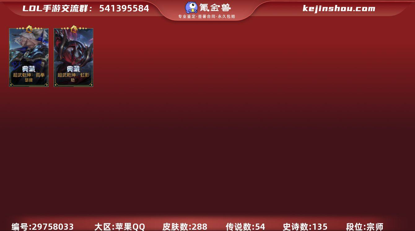 英雄95 皮肤288 2典藏/9神话/54传说/134史诗/ 超凡大师Ⅰ 【订单编号】S1UKY 【有无防沉迷】无防沉迷 【游戏等级】121 【游戏区服】苹果QQ 【英雄数量】95 【皮肤数量】288 【游戏段位】超凡大师Ⅰ 【终极皮肤】0 【典藏皮肤】2 超武乾坤孤拳瑟提 超武乾坤虹影劫 【神话皮肤】9 臻藏跳跳倩影厄运小姐 臻藏西部魔影卢锡安 至臻灵魂莲华易 至臻心之钢永恩 黎明使者破晓之殇佛耶戈 乘龙破渊李青 天陨烈辉艾希 涂鸦小队斑斓艺术布兰德 斗魂耀世德莱文 【传说皮肤】54 霸天原祖沃利贝尔 源计划超体莫德凯撒 北极星神黛安娜 双城之战殊途杰斯 海魔至尊亚托克斯 幻灵特战队长菲奥娜 律政大亨蒙多医生 星之守护者阿卡丽 神龙尊者圣龙李青 暗星女王拉克丝 暗星尊烬 地狱之门卫士加里奥 斗魂觉醒莎弥拉 斗魂无双亚索 光明哨兵格雷福斯 光明哨兵薇恩 黑夜使者亚索 剪胜裁春格温 黎明使者锐雯 黎明使者永恩 黎明使者德莱文 炼狱魔犬内瑟斯 灵魂莲华瑟提 灵魂莲华锤石 魔女伊芙琳 欧米伽小队幽灵特工提莫 日蚀骑士蕾欧娜 神龙尊者驭风啸龙易 神拳李青 神王盖伦 神王德莱厄斯 天煞劫 跳跳倩影厄运小姐 涂鸦小队莎弥拉 未来战士凯特琳 西部魔影卢锡安 西部天使艾希 心之钢凯隐 星域游侠崔斯特 星之守护者卡莎 星之守护者阿狸 星之守护者金克丝 星之守护者辉霞 星之守护者陨洛 驯龙炮手崔丝塔娜 源计划毁灭派克 源计划净化薇恩 源计划联合艾希 源计划林易 源计划泯灭雷克顿 月蚀骑士蕾欧娜 战斗学院凯特琳 战斗学院伊泽瑞尔 最终BOSS维迦 【稀有回城特效】 【史诗皮肤】134 欧米伽小队天雷爆破手维迦 礼物选好了吗布隆 我羽饰骑士崔丝塔娜 北极星寒枝莉莉娅 北极星使者安妮 北极星霜潮娜美 北极星守护者赫卡里姆 双城之战天资金克丝 双城之战权柄凯特琳 野火首领艾克 幻灵特战骏希维尔 幻灵战斗蝠薇恩 幻灵特战羚索拉卡 冰封王子蒙多...