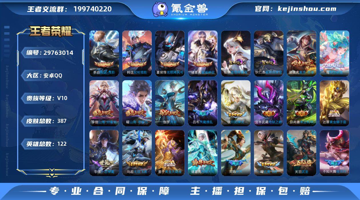 【V10 4典藏 2星传说 45传说 387皮肤 122英雄】17印记 至尊宝 鸣剑·曳影,无限飓风号,星域神启,弑枪猎影 金色仲夏夜,星际治安官 炽阳神光,无双飞将,云鹰飞将,山海·苍雷引,时之祈愿(瑶),一念神魔,山海·炽霜斩,太华,末日机甲(孙策),寅虎·赤拳,补天,胖达荣荣,碎云,绛天战甲,久胜战神,时雨天司,枫霜尽,绯月行,淬星耀世,仲夏夜之梦,猫影幻舞,遇见胡旋,黄金射手座,末日机甲(孙尚香),异界灵契,天魔缭乱,怒海麟威,地狱火,齐天大圣,地狱之眼,超时空战士(狄仁杰),神器·狴犴令,武圣,黄金狮子座,时之恋人(刘备),诗剑行,冠军飞将,燃星之曲,乞巧织情,寅虎·瑞焰,黄金白羊座,启明星使,觅芳踪,黄金天蝎座,鸣野蒿 蓝屏警告 大圣娶亲 一生所爱 青龙志 孙行者 Df22-17,编号:WPRNX85
