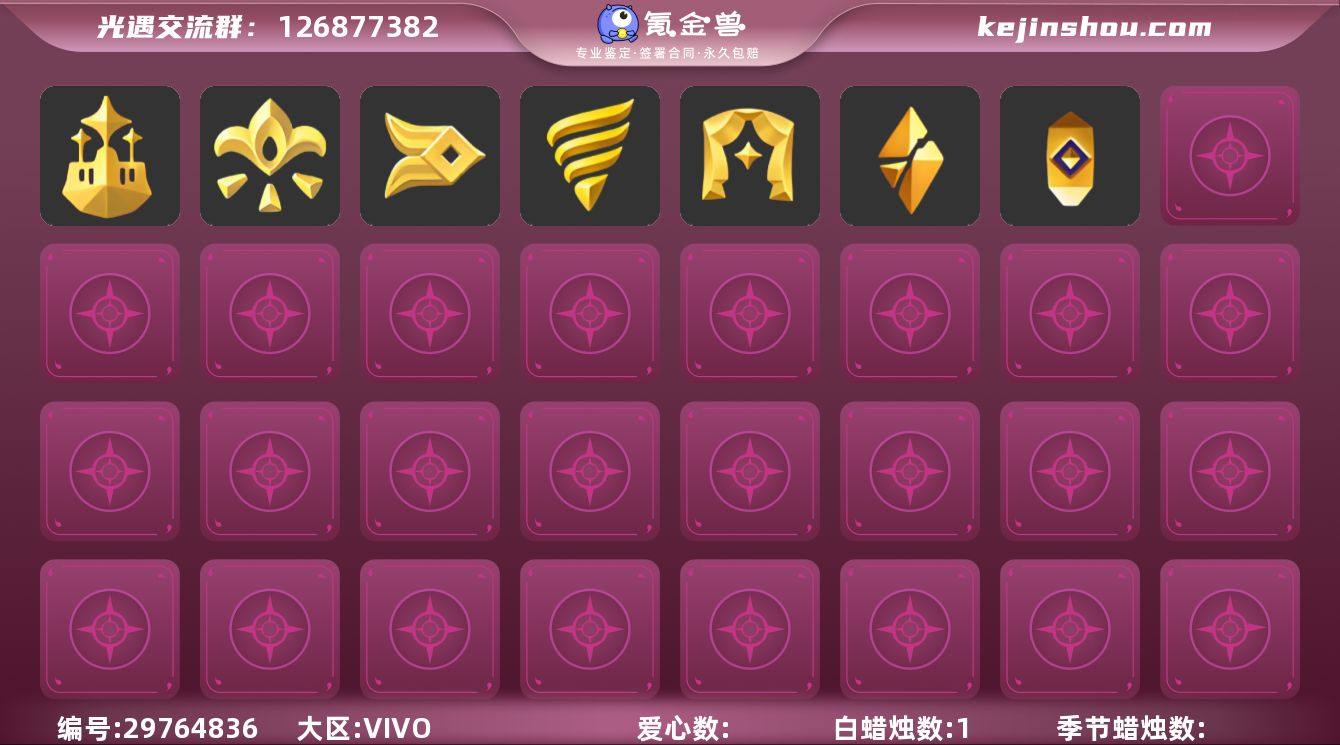 10季10翼妮妮长裙武士裤鲲灯透明蝶翼玫瑰花面具星月头冠潜海面具 资源: 蜡烛 26 爱心18 10翼 已毕业地图:晨岛 云野 雨林 霞谷 墓土 毕业季节: 潜海季 欧若拉季 追忆季 归巢季 九色鹿季 姆明季 彩染季 青鸟季 半二重奏季 半夜行季 稀有礼包:巫师帽 青衫落拓 大桔大利 九色鹿鹿角 星月头冠 小王子斗篷 蛛丝斗篷 狐狸背包 热门裤子:背带裤 遥鲲长袍 绑带舞服 奔月长袍 妮妮长裙 海洋武士裤 白棉裤 搓澡巾 武士裤 女仆围裙 美工衣 红色流珠裙 探险燕尾服 热门面具:矮人面具 狐狸面具 黄鼠狼面具 棕熊面具 盲僧眼罩 向导面具 青鸟面具 红脸蛋面具 玫瑰花面具 玫瑰面具 黑脸 鸟羽面具 热门发型:海藻头 爆炸头 大胡子 小飞象 雨妈 卡卡 平菇 龙骨 箬笠 蝴蝶结 公主头 粗辫 水母头 书虫 总裁头 正太头 高马尾 斗笠 绿丝带 虚荣 圆环发辫 留辫蘑菇头 李逍遥发型 彩色脏辫 彩羽发型 春丽丸子头 樱花 马蹄莲发型 巫师帽 猫猫头 女巫发型 青衫落拓发型 热门头饰: 飞羽发饰 大桔大利 花环 蓝色音乐会 辫子发饰 星月头冠 九色鹿鹿角 探险耳机 热门斗篷:五角星斗篷 红金斗篷 黑金斗篷 白金斗篷 汉服斗篷 围巾(小王子季) 展翼圆环斗 透明蝶翼 小浣熊斗篷 布丁斗篷 布条斗篷 彩霞斗篷 国风斗篷 灰色斗篷 双排扣斗篷 史力奇 斗篷 姆明季斗篷 镂空斗篷 镂空三条斗 彩染季围巾斗篷 红色探险斗 星空斗篷 鸟羽斗篷 新年福娃斗篷 樱花斗篷 马蹄莲斗篷 绿芽 海洋斗篷 彩虹斗篷 暗彩斗篷 蛛丝斗篷 青衫落拓斗篷 热门背饰:号角 相机 红色雨伞 椅子 星星灯 鲲灯 女巫茶桌 狐狸背包 姆明季抱枕 二重奏壁画 mini小手办...