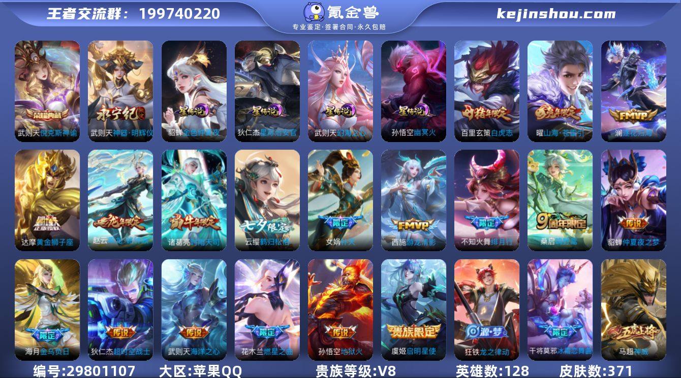 火舞/武则天/云缨万战 19个王者印记5个荣耀 好几个英雄差一个全皮 武则天/高渐离全皮