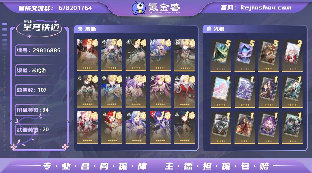 开拓者性别:男 总黄数:107 星轨专票:0 五星角色数:34 5命姬子,5命布洛妮娅,4命丹恒·饮月,4命白露,3命流萤,3命阮•梅,3命杰帕德,2命遐蝶,2命符玄,2命克拉拉,1命风堇,1命缇宝,1命知更鸟,1命黄泉,1命刃,1命希儿,1命瓦尔特,0命昔涟,0命丹恒·腾荒,0命长夜月,0命Archer,0命那刻夏,0命大黑塔,0命忘归人,0命星期日,0命云璃,0命花火,0命真理医生,0命藿藿,0命镜流,0命罗刹,0命银狼,0命景元,0命彦卿 五星光锥数:20 5精记忆的质料,5精星海巡航,3精镜中故我,2精无可取代的东西,1精爱如此刻永恒,1精让告别,更美一些,1精向着不可追问处,1精梦应归于何处,1精行于流逝的岸,1精游戏尘寰,1精她已闭上双眼,1精比阳光更明亮的,1精银河铁道之夜,1精以世界之名,1精但战斗还未结束,1精制胜的瞬间,1精不息的演算,1精孤独的疗愈,1精记一位星神的陨落,1精记忆永不落幕 邮箱状态:不送邮 卖家说:可议价,原神,崩铁,绝区零连体号
