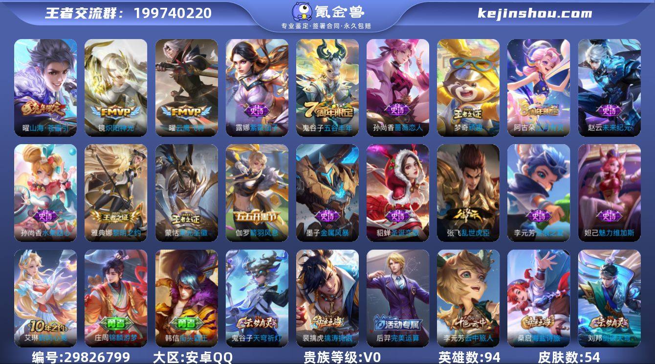 两个区!安卓区1.45w大国标赵云低场次,苹果区66段打野1.36w省标耀、1.2w省标镜和老虎、1.1w露娜和赵怀真,不急出,玩很久了