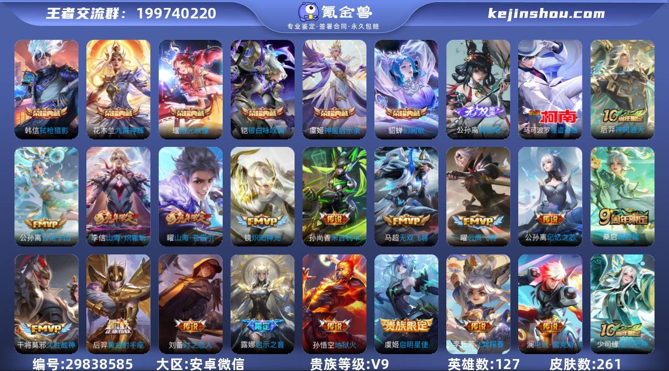 国服阿离,70段发育路,基本发育路万战以上,5个荣耀典藏,贵族9,有兴趣可以看看,5年微信账号,这赛季巅峰最高2090多,还几个目前万战,可以议价,可以先验号