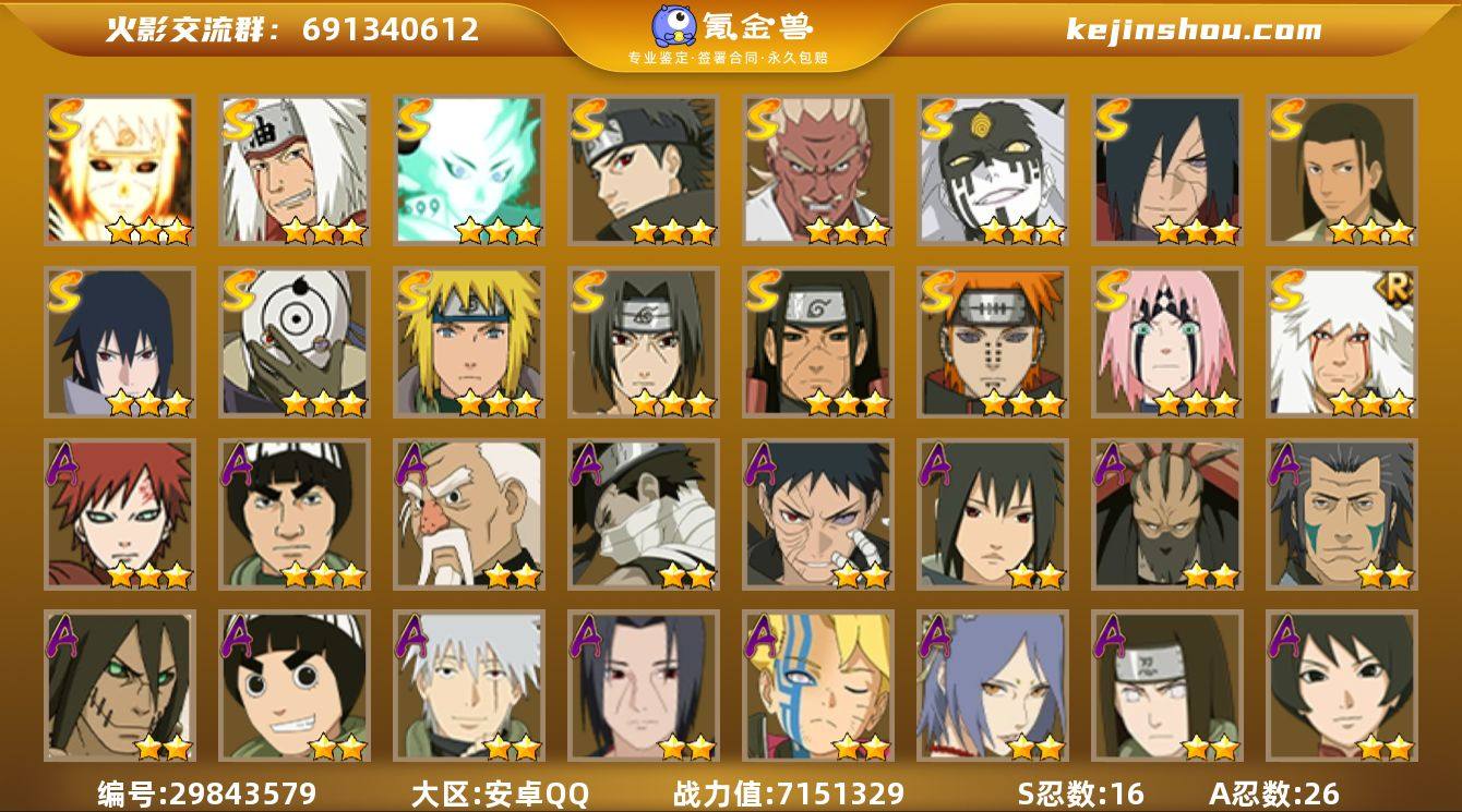 实名:不可二次实名 贵族等级:V10 战力值:7151329 S忍数:16 A忍数:26 三星波风水门「九喇嘛连结」,三星自来也「传说中的三忍」,三星大筒木舍人「最终章」,三星宇智波止水「须佐能乎」,三星艾「忍界大战」,三星大筒木桃式,三星宇智波斑「秽土转生·解」,三星千手柱间·木叶创立,三星宇智波佐助「永恒万花筒」,三星宇智波斑「白面具」,三星波风水门,三星宇智波鼬「须佐能乎」,三星千手柱间「秽土转生」,三星佩恩「天道」,三星春野樱「忍界大战」,三星自来也「舞之豪杰」 三星我爱罗「疾风传」,三星迈特凯,二星大野木「侠隐江湖」,二星桃地再不斩「秽土转生」,二星宇智波带土「漂泊浪客」,二星宇智波泉奈,二星蝎「绯流琥」,二星不动,二星角都「秽土转生」,二星李洛克「忍界大战」,二星旗木卡卡西「幻之真容」,二星宇智波鼬「夏日限定」,二星漩涡博人「桃式显现」,二星小南「漂泊浪客」,二星日向宁次·忍界大战,二星黑土「博人传」,二星宇智波佐助「须佐能乎」,二星千代「近松十人卫」,二星秋道丁次「忍界大战」,二星飞段「死司凭血」,二星飞段,二星迪达拉,二星蝎,二星干柿鬼鲛,二星宇智波鼬,二星猿飞阿斯玛 卖家说:打包卖,主页有金铲铲的!想要的可以买!诚心出,可以砍价