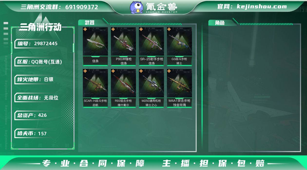 tx1237 总资产426M 烽火等级60级 红狼-蚀金玫瑰捆绑包 信条捆绑包 骇爪-维什戴尔捆绑包 特勤处高等级 收藏室多大红 仓库多大红 非洲之心 S7赛季通行证 80发AWM子弹 157M纯币 (可二次实名)