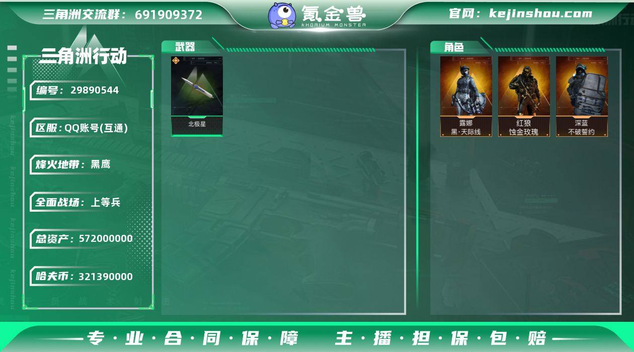 实名: 可修改 烽火地带段位: 黑鹰 全面战场段位: 上等兵 总资产: 572000000 哈夫币: 321390000 传说武器皮肤: 近战-北极星 干员外观: 红狼-蚀金玫瑰,露娜-黑·天际线,深蓝-不破誓约(S6) 亮点: 【938】惠3681782总资产572M,哈夫币32139w,枪皮数量114,战场等级:13 上等兵,行动等级:60 黑鹰,角色皮肤数量3,露娜-黑天际线/红狼-蚀金玫瑰/深蓝-不破誓约【个人信息】战场等级:13 上等兵,行动等级:60 _黑鹰【哈夫币】32139w【总资产】572M【货币】43三角币/11曼德尔币/80三角券【安全箱】基础安全箱2(1x2)/进阶安全箱4(2x2)【通行证】烽火地带限定版【特勤处】制药台Lv.3/工作台Lv.3/仓库Lv.7/防具台Lv.3/训练中心Lv.5/靶场Lv.4/技术中心Lv.3/指挥中心Lv.5/潜水中心Lv.1/收藏室Lv.1【角色皮肤】露娜-黑天际线/红狼-蚀金玫瑰/深蓝-不破誓约/【已拥有捆绑包】北极星捆绑包/捞点薯条捆绑包/特斯拉线圈捆绑包/【近战皮肤】近战-黑鹰/近战-北极星/【步枪皮肤】M4A1突击步枪-蚀金玫瑰/AUG突击步枪-蝮蛇/K437突击步枪-北极星/SCAR-H战斗步枪-囚徒/CAR-15突击步枪-阿米娅/M4A1突击步枪-阿米娅/腾龙突击步枪-捞点薯条/AK-12突击步枪-特斯拉线圈/SR-3M紧凑突击步枪-特斯拉线圈/腾龙突击步枪-猎鳄行动/K437突击步枪-守护者/ASh-12战斗步枪-无极限/G3战斗步枪-骑士/SCAR-H战斗步枪-启航/SR-3M紧凑突击步枪-战术竞备/【冲锋枪皮肤】UZI冲锋枪-特斯拉线圈/Vector冲锋枪-阿萨拉文明/QCQ171冲锋枪-北极星/勇士冲锋枪-能天使-午夜邮差/P90冲锋枪-紧急戒备/MP7冲锋枪-守护者/勇士冲锋枪-工业狂潮/MP5冲锋枪-战术竞备/【轻机枪皮肤】M250通用机枪-囚徒/QJB201轻机枪-OldHabits/M250通用机枪-骑士之心/【精准射手步枪皮肤】Mini-14射手步枪-守护者/【狙击步枪皮肤】SV-98狙击步枪-林中猎手/AWM狙击步枪-捞点薯条/【手枪皮肤】93R-捞...