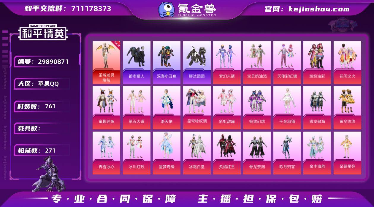 【特价出售】 钱包无法注销苹果Q-1红装2稀有24粉装10特效枪16热门213套装271枪皮 97590热力值 18印记 历史超级王牌14星 【1红装】 圣域龙灵-瑞拉 (2级) 【2稀有】 都市猎人 浪漫天命 【24粉装】 梦幻火箭 小蓝 宝贝奶油派 天使彩虹糖 千金淑猫 洛天依 金丰海韵 星穹咏叹调 星梦奇缘 呆萌星弥 缤纷油彩 第五大道 极致幻想 花间之火 童趣迷兔 冰霜白皇 炙焰红王 霁雪冰心 彩虹甜喵 冰川红玫 骨龙祭渊 银龙傲海 吟月归客 黄伞悠悠 【10特效枪】 SCAR-L-纯梦嫁纱 (7级) M416-心之恋语 (7级) P90-金丰海韵 (4级) AKM-甜心宝贝 (7级) Kar98K-圣域龙灵 (3级) Kar98K-巳巳如意 (5级) DP-28-千金淑猫 (4级) AUG-暖羊咩咩 (5级) GROZA-旋转彩虹 (6级) M249-彩虹甜喵 (4级) 【16热门】 龟仙人 2P战斗服款 红熊茄茄 软软马卡龙 糯粉咩咩 鹰眼刺客 奶芙汪汪 恶魔喵喵 深海小丑鱼 胖达团团 暗影哥特 团圆交子 瑞龙福将 漫步者 M762-瑞龙福将 M24-奇异狩猎者 【3飞行器】 童趣迷兔飞行器 相思残雪飞行器 甜梦小狐飞行器 【4头盔】 梦幻火箭头盔 甜心宝贝头盔 花间之火头盔 夏日绵绵冰头盔 【3背包】 甜心宝贝背包 深海小丑鱼背包 夏日绵绵冰背包