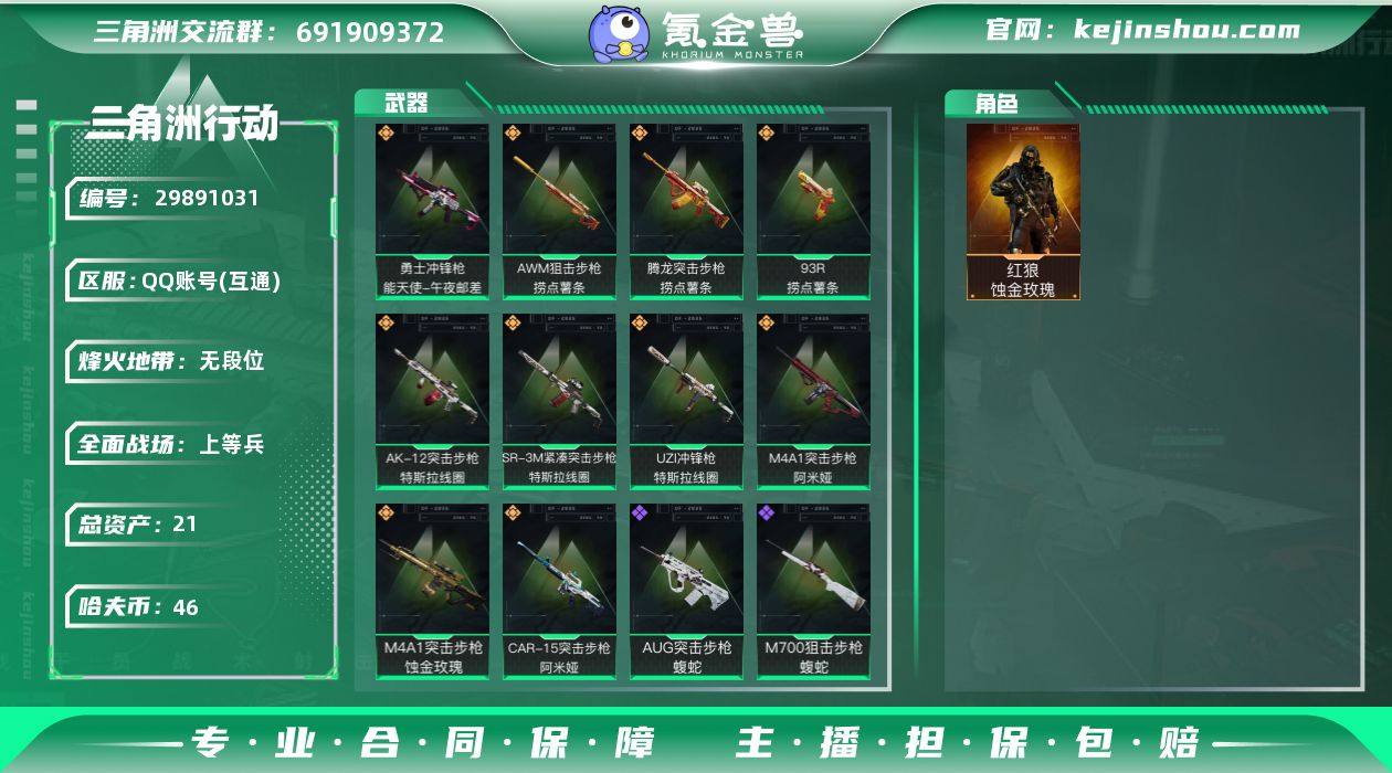 【SJZG2224】总资产(M):21M/哈夫币(K):46K/哈夫币(K):46K/全面战场等级:36_段位:上等兵/烽火地带等级:60_段位:黑鹰/红狼-蚀金玫瑰/蜂医-送葬人·无题密令/深蓝-不破誓约/红狼-电锯惊魂/近战-北极星/近战-黑鹰/AKM突击步枪-阿萨拉卫队/AKS-74U突击步枪-监察/MP5冲锋枪-古铜/M4A1突击步枪-蚀金玫瑰/M4A1突击步枪-阿米娅/ASh-12战斗步枪-鹅鸭杀/SG552突击步枪-运动员/AK-12突击步枪-特斯拉线圈/SCAR-H战斗步枪-启航/CAR-15突击步枪-阿米娅/腾龙突击步枪-捞点薯条/K437突击步枪-北极星/KC17突击步枪-电锯惊魂/UZI冲锋枪-特斯拉线圈/SR-3M紧凑突击步枪-特斯拉线圈/勇士冲锋枪-能天使-午夜邮差/QCQ171冲锋枪-北极星/QCQ171冲锋枪-鹅鸭杀/725双管霰弹枪-送葬人-无题密令/M250通用机枪-骑士之心/QJB201轻机枪-鹅鸭杀/AWM狙击步枪-捞点薯条/93R-捞点薯条/复合弓-黑·天际线/QBZ95-1突击步枪-曙光/ASh-12战斗步枪-无极限/M16A4突击步枪-竞赛选手/AUG突击步枪-蝮蛇/SCAR-H战斗步枪-囚徒/G3战斗步枪-流沙送葬/AS Val突击步枪-典狱官/AS Val突击步枪-百步穿杨/腾龙突击步枪-无垢/K437突击步枪-守护者/MP5冲锋枪-深海恐惧/MP5冲锋枪-战术竞备/MP5冲锋枪-竞技风/Vector冲锋枪-猎鳄行动/Vector冲锋枪-异域战争/SR-3M紧凑突击步枪-荒野求生/SR-3M紧凑突击步枪-战术竞备/勇士冲锋枪-工业狂潮/MP7冲锋枪-无垢/MP7冲锋枪-守护者/PKM通用机枪-荒野求生/M250通用机枪-囚徒/Mini-14射手步枪-守护者/SVD狙击步枪-荒野求生/PSG-1射手步枪-无垢/SV-98狙击步枪-林中猎手/M700狙击步枪-蝮蛇/AWM狙击步枪-无极限/复合弓-守护者/AKM突击步枪-战术演练/AKM突击步枪-肃杀/QBZ95-1突击步枪-公平竞技/K416突击步枪-虎啸/