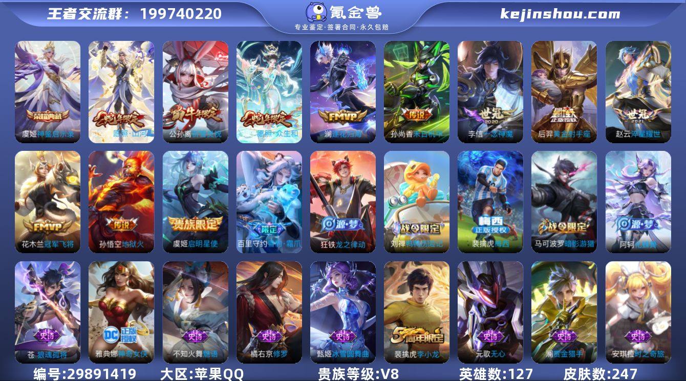 编号91264 不可二次 V8 247皮肤 1典藏 11传说 神鉴启示录 梅西 愿照·山河定 愿照·众生和 祈雪灵祝 神奇女侠 雪豹·霜爪 冠军飞将 逐花归海 启明星使 一念神魔 地狱火 黄金射手座 孙尚香-末日机甲 淬星耀世 逐梦之翼 逐浪之夏 玩趣恶龙 无心 暗影游猎 航海奇遇记 安琪拉-时之奇旅 街头霸王 李小龙 特工魅影 猫狗日记(男) 曙光守护者 修罗 赏金猎手 水晶猎龙者