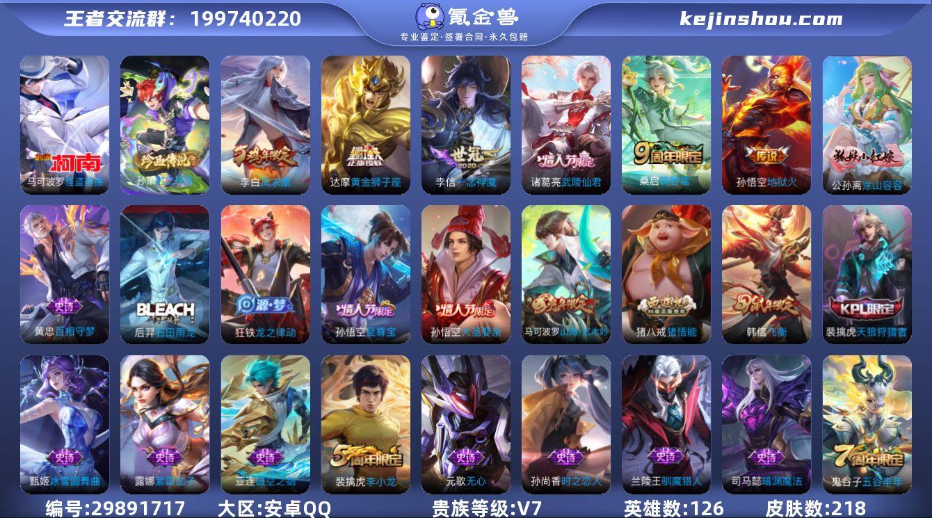 【特价出售】安卓q-V-218皮肤2珍品传说6传说 【珍品传说】 时之奇旅孙策 怪盗基德 【传说】 凤求凰 鸣野蒿 武陵仙君 地狱火 一念神魔 黄金狮子座 【热门】涂山容容 至尊宝 山海玄木吟 飞衡 逐梦之影 天狼狩猎者 大圣娶亲 猪悟能 猎兽之王 神迹守卫钟馗 狮舞东方 星空之诺 银河之约 冰冠公主 原初追逐者 黎明之约 梁祝 黄忠百相守梦 天秀启明 原初探秘者 李小龙 水晶猎龙者 暗隐猎兽者 猫狗日记男 金属风暴 地狱岩魂 特工魅影 玩趣恶龙 胡桃夹子 逐浪之夏 白龙吟 千年之狐 紫霞仙子 功夫厨神 圣诞恋歌 幽灵船长 乘风破浪 圣诞狂欢 末日机甲男 星夜王子 节奏热浪 天才门将 时之恋人女 街头霸王 暗渊魔法 鬼剑武藏 德古拉伯爵 赤莲之焰 冰雪圆舞曲 花好人间 炼金王 狰 饕餮 烛龙 重明 穷奇 御狮 御霄 御旌 御銮 朔风刀 混沌棋 疑决卦 醍醐杖 万华元夜 演武夺筹 驱傩正仪 未来纪元赵云 千军破阵 拳王 沙漠行僧 女仆咖啡 金庭之子 霸王丸 大漠名商 敏锐之力 云中旅人 丁香结 海盐诗旅 皇家上将 擒涛扼浪 魅力维加斯 探海日志 水果甜心 古海寻踪 天穹祈灯 无心 荣光圣徽 顽岩魄 五谷丰年 繁星吟游 驯魔猎人 鹰眼统帅 魔术师 顽趣梦奇 126英雄-营地ID:439237518