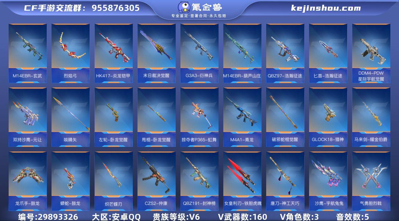 穿越火线安卓手Q 金v【王者之兽 王者之影 王者之心 王者之霆 王者之魂 科尔特-仲达 星芒 7把屠龙 Mk47-仁德 m200幻神 KSG-孟获 81光明之神】